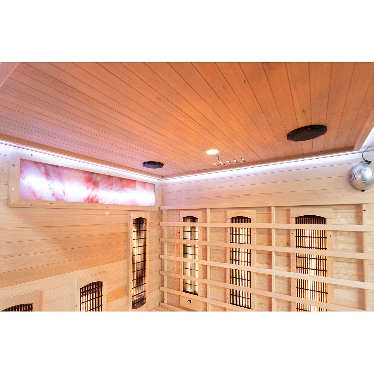 Інфрачервона сауна (інфрачервона, низькотемпературна) без пари та з низькою температурою повітря (до 60°C), де замість традиційних печей використовуються кварцові, керамічні або карбонові інфрачервоні обігрівачі. Дерев'яну кабіну з канадської ялиці можна встановити у ванній кімнаті, спальні, вітальні або будь-якій іншій кімнаті. Для роботи достатньо стандартного джерела живлення 230 В. Заводські налаштування сауни встановлені на 60 хвилин після ввімкнення. Він має автоматичний вимикач, який запобігає випадковому залишенню сауни увімкненою на занадто тривалий час, що робить її безпечною у використанні. Обігрівачі оснащені потенціометрами, завдяки яким можна регулювати потужність нагріву кожного з них, та додатково закріплені дерев'яними ґратами.