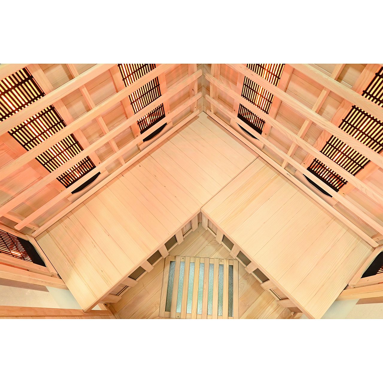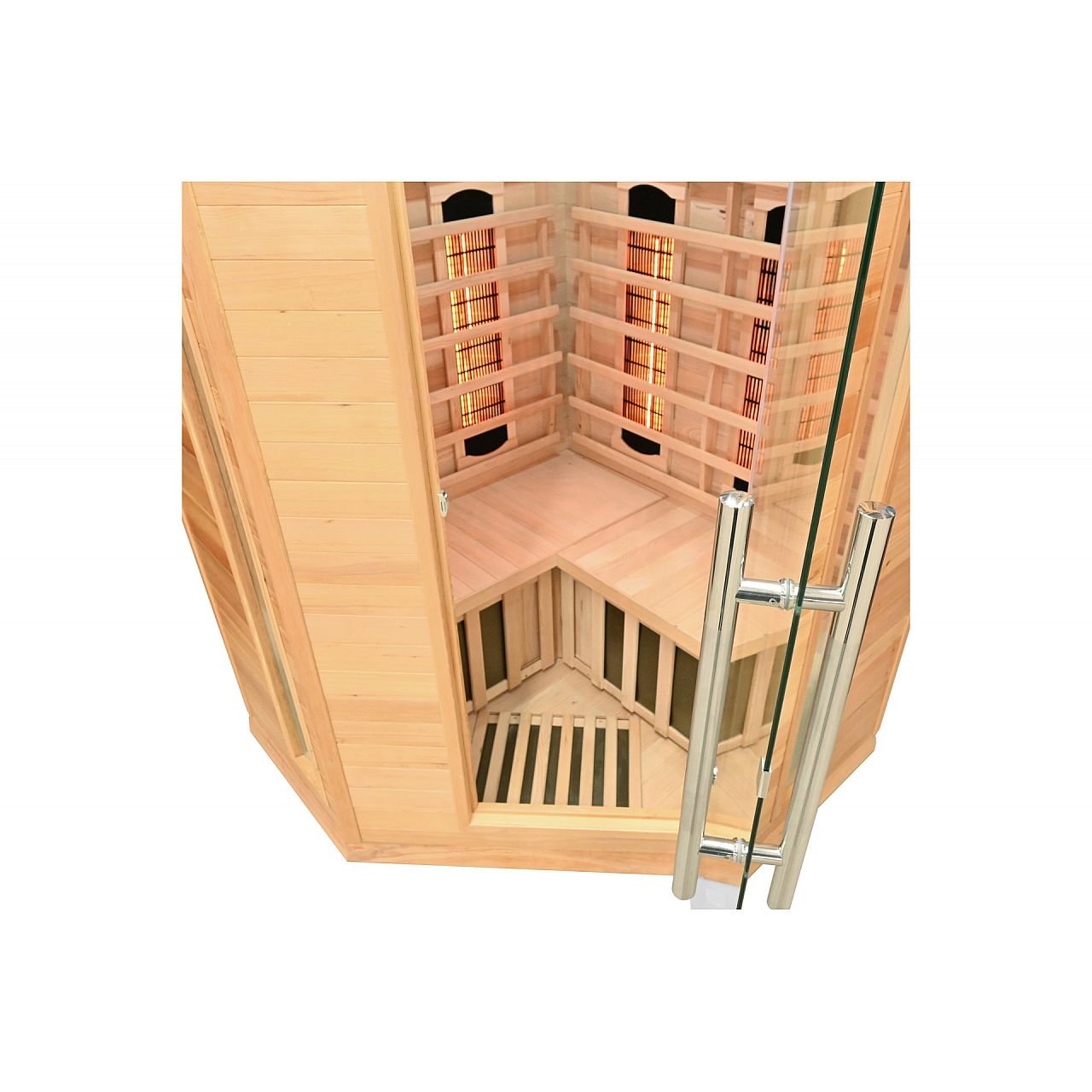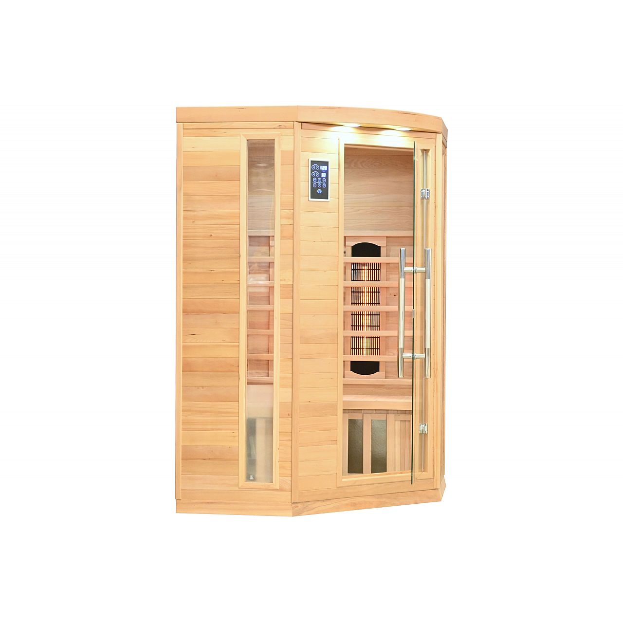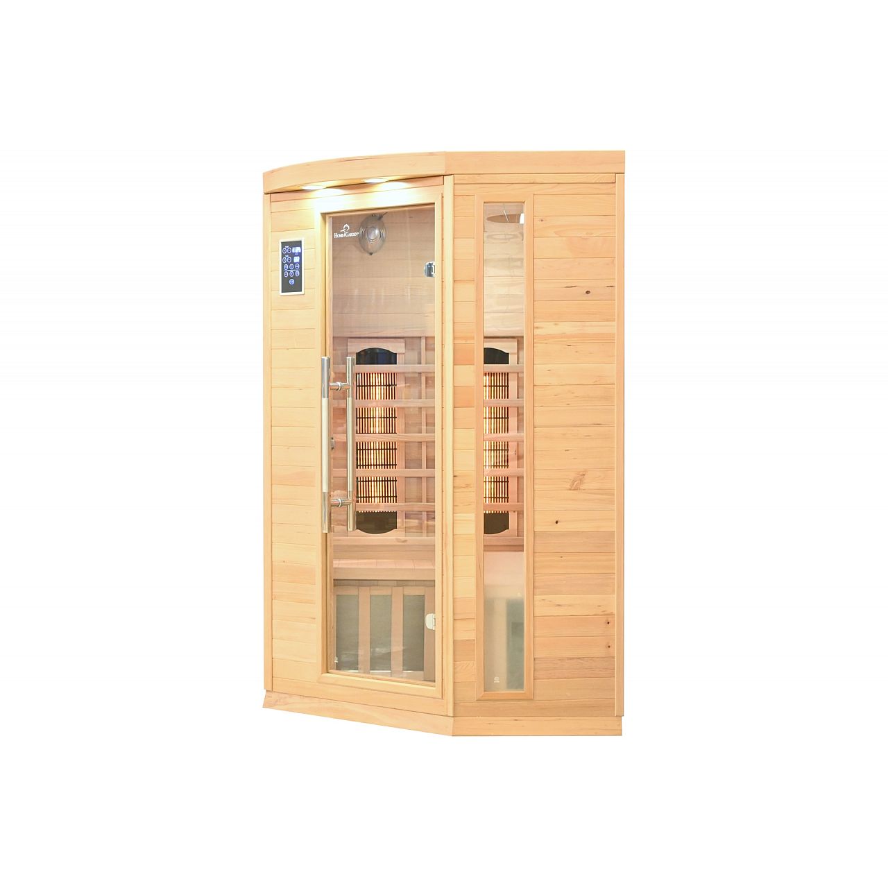Інфрачервона сауна (інфрачервона, низькотемпературна) без пари і з низькою температурою повітря (до 60°C), де замість традиційних печей використовуються кварцові або вугільні інфрачервоні обігрівачі. Кабіну з канадської ялиці можна встановити у ванній, спальні, вітальні або будь-якій іншій кімнаті. Для роботи достатньо звичайного джерела живлення 230В. Сауна має автоматичний вимикач, який запобігає випадковому залишанню увімкненою на надто тривалий час, що робить її безпечною у використанні. Радіатори захищені дерев'яними сітками.