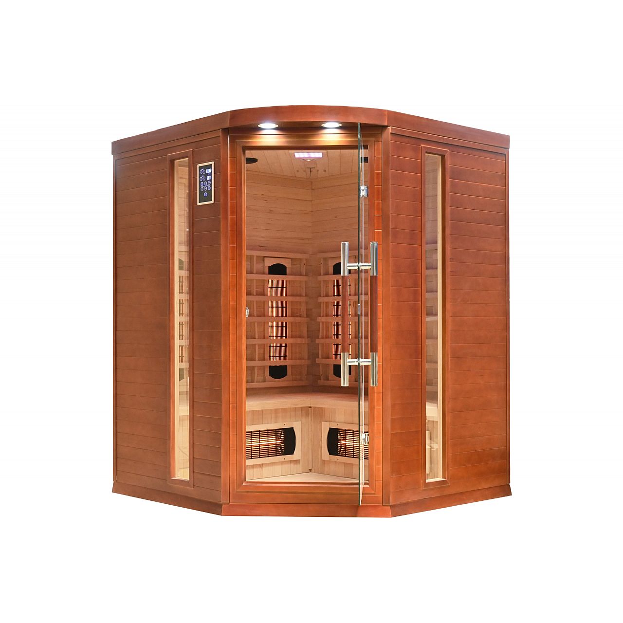 Обладнання:• мультимедійне радіо з USB/BT, оснащене кабелем антени • два стереодинаміки, встановлені в стелі сауни • 2 панелі управління: зовнішня та внутрішня (дозволяє змінювати параметри роботи сауни, не виходячи з сауни під час відпочинку) • іонізатор повітря видаляючи бактерії, що викликають неприємні запахи, та освіжаючи повітря, завдяки іонізатору повітря в сауні завжди буде чистим і здоровим • кольоротерапія дозволяє встановити розслаблюючу частоту кольорового світла • зовнішнє та внутрішнє освітлення • двері та вікна з загартоване скло | |