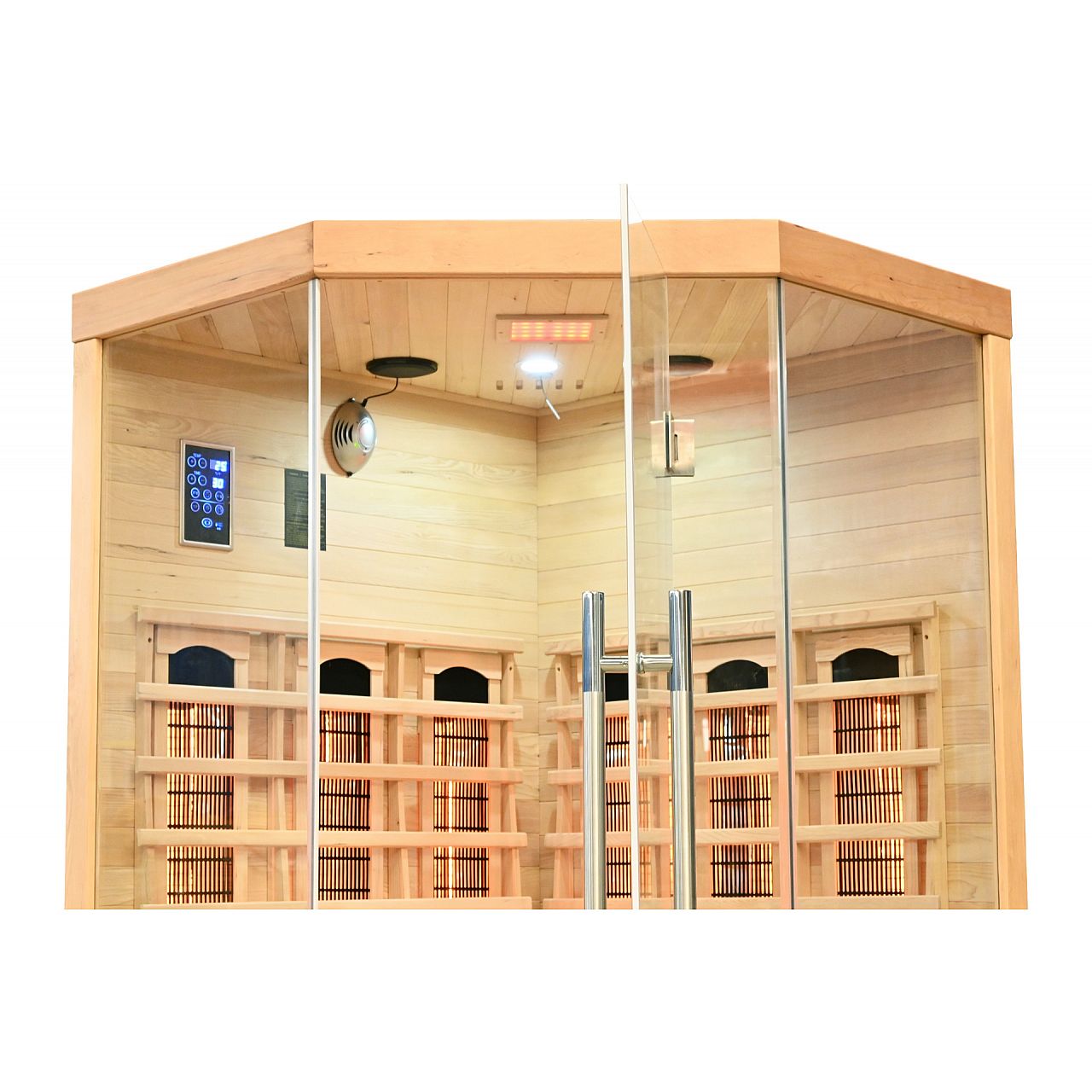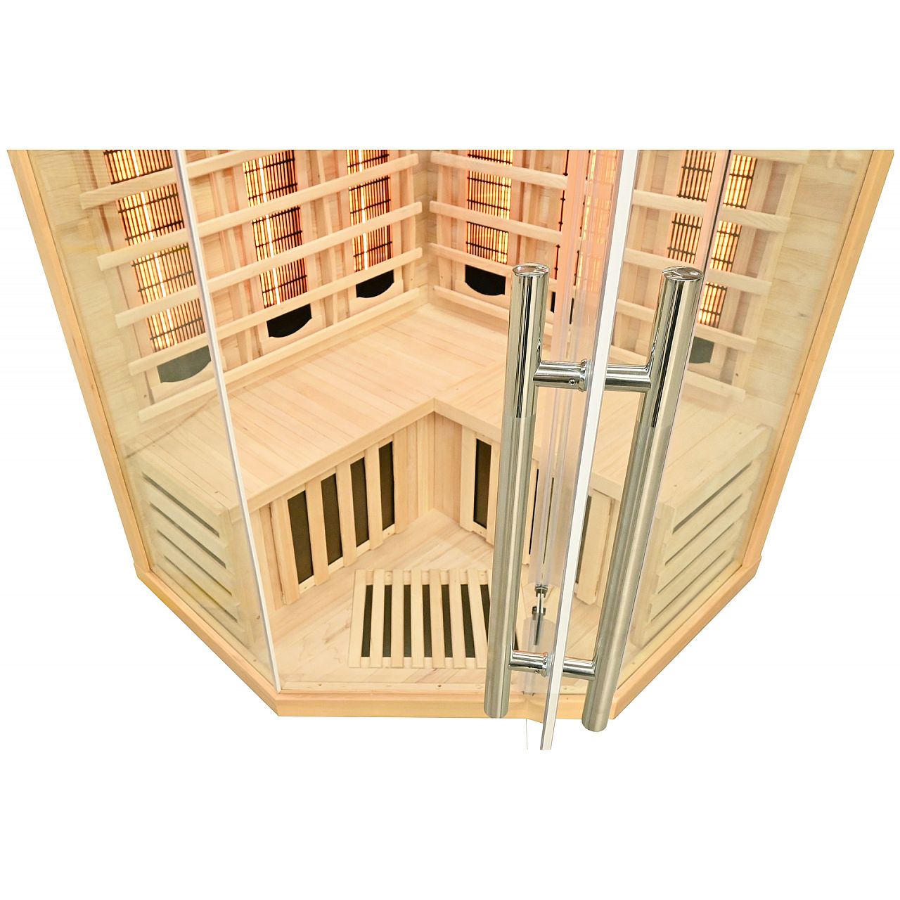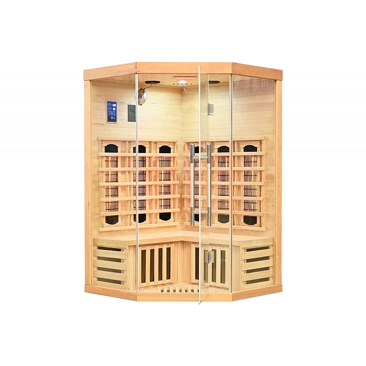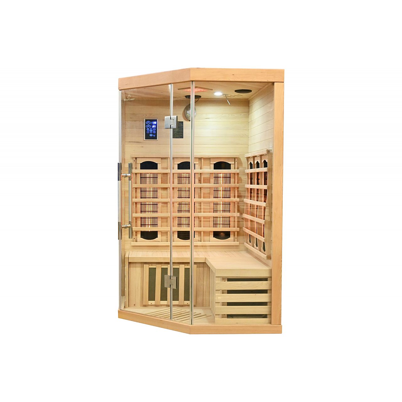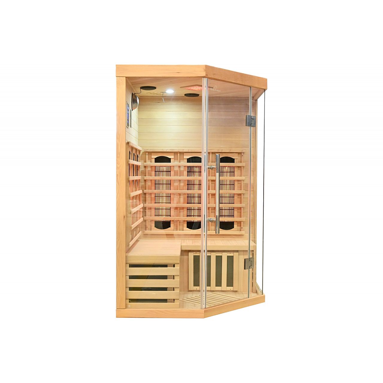 Інфрачервона сауна (інфрачервона, низькотемпературна) без пари і з низькою температурою повітря (до 60°C), де замість традиційних печей використовуються кварцові, керамічні або вугільні інфрачервоні обігрівачі. Кабіну з канадської ялиці можна встановити у ванній, спальні, вітальні або будь-якій іншій кімнаті. Для роботи достатньо звичайного джерела живлення 230В. Сауна має автоматичний вимикач, який запобігає випадковому залишанню увімкненою на надто тривалий час, що робить її безпечною у використанні. Радіатори захищені дерев'яними сітками.