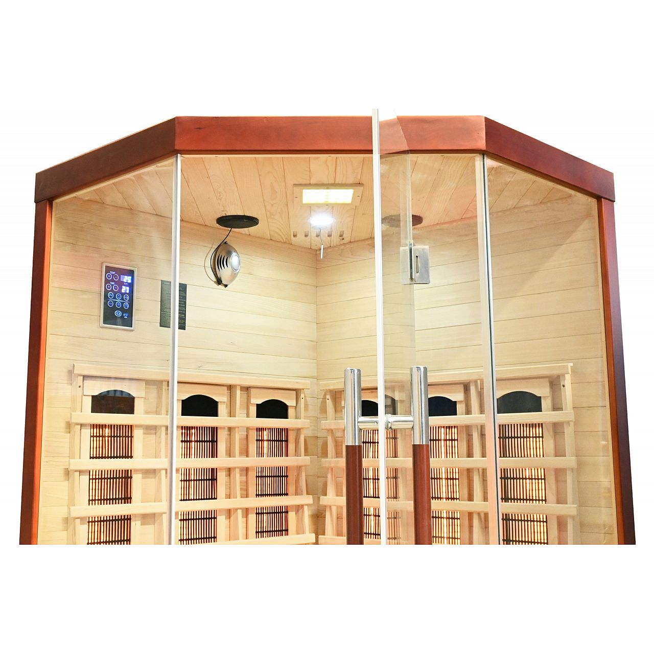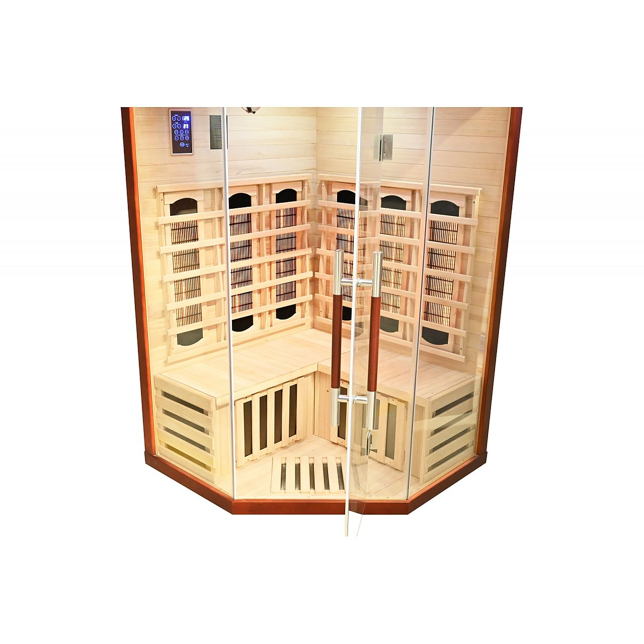 Інфрачервона сауна (інфрачервона, низькотемпературна) без пари і з низькою температурою повітря (до 60°C), де замість традиційних печей використовуються кварцові, керамічні або вугільні інфрачервоні обігрівачі. Кабіну з канадської ялиці можна встановити у ванній, спальні, вітальні або будь-якій іншій кімнаті. Для роботи достатньо звичайного джерела живлення 230В. Сауна має автоматичний вимикач, який запобігає випадковому залишанню увімкненою на надто тривалий час, що робить її безпечною у використанні. Радіатори захищені дерев'яними сітками.