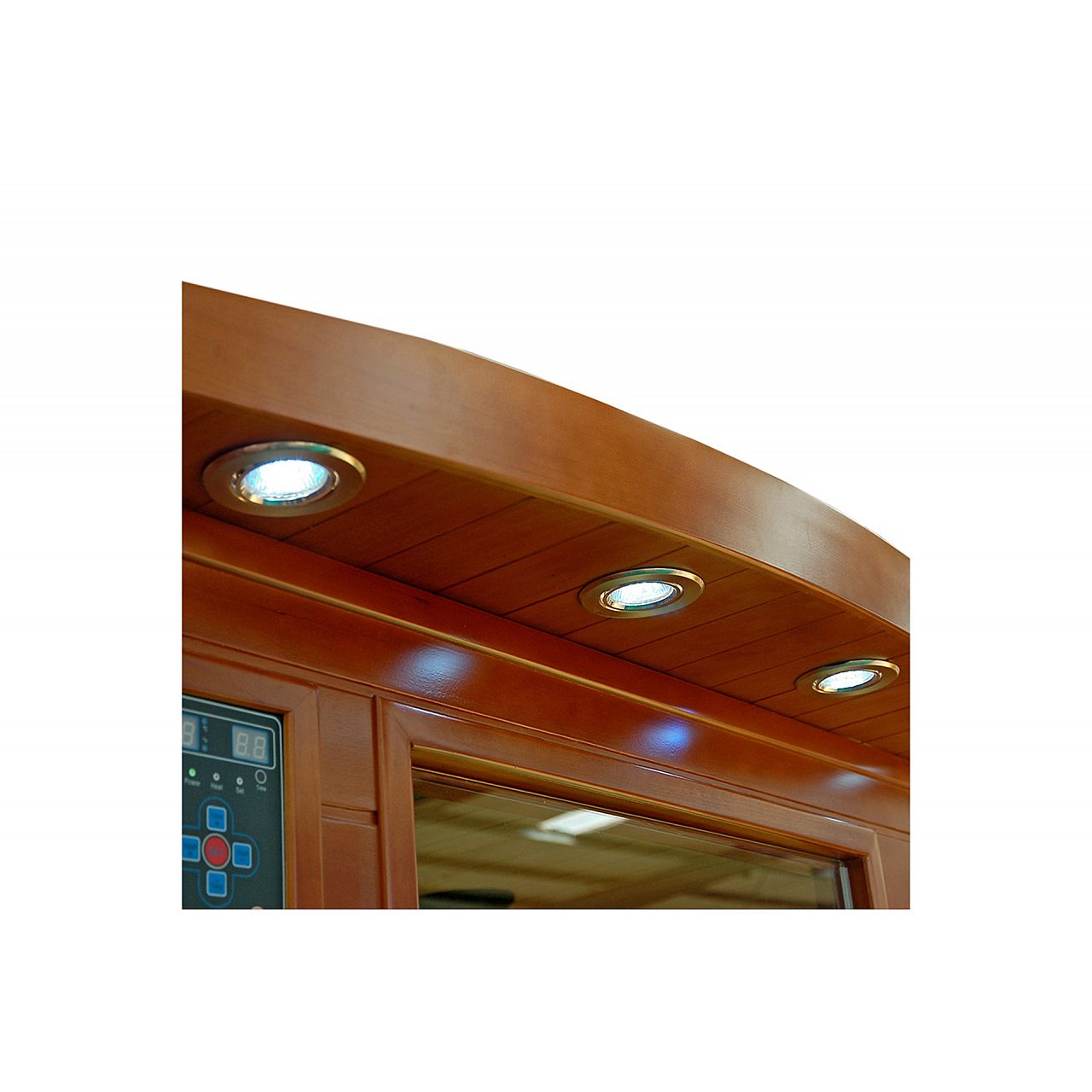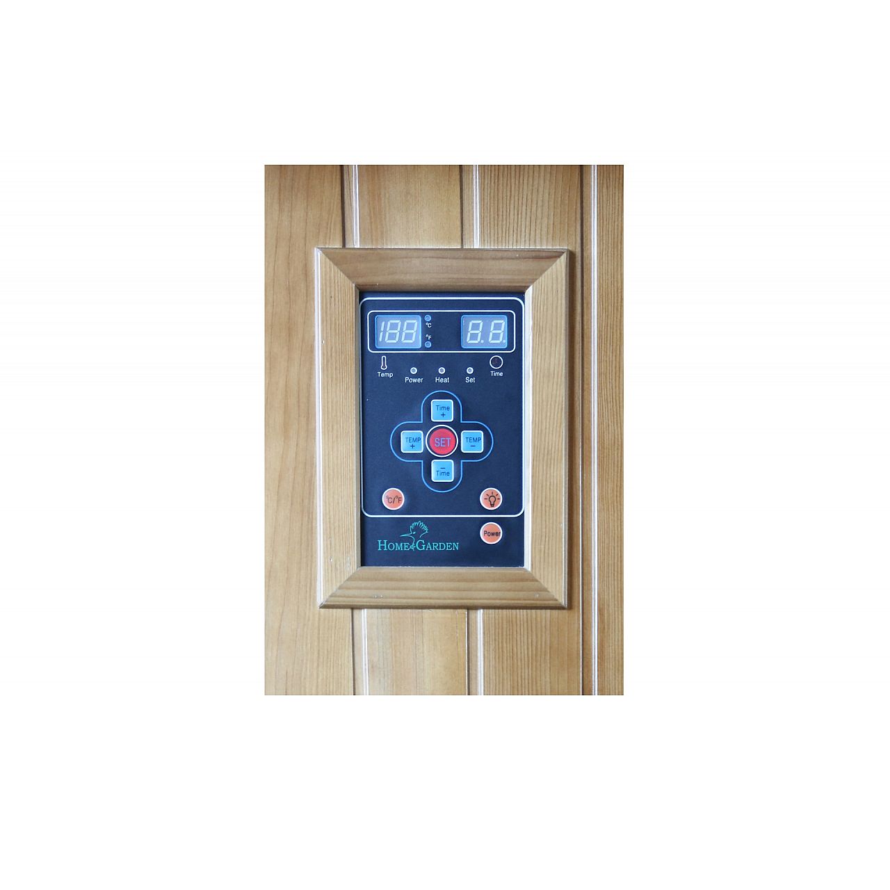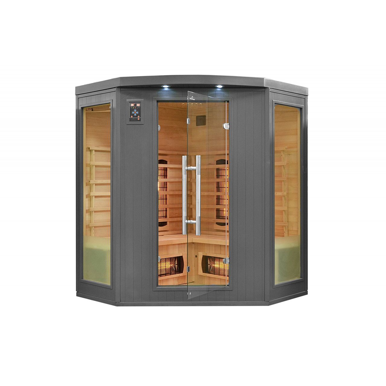 Інфрачервона сауна (інфрачервона, низькотемпературна) без пари і з низькою температурою повітря (до 60°C), де замість традиційних печей використовуються кварцові, керамічні або вугільні інфрачервоні обігрівачі. Кабіну з канадської ялиці можна встановити у ванній, спальні, вітальні або будь-якій іншій кімнаті. Для роботи достатньо звичайного джерела живлення 230В. Після ввімкнення сауна налаштована на заводі на 60 хвилин. Він має автоматичний вимикач, який запобігає випадковому залишанню сауни увімкненою на надто тривалий час, що робить її безпечною у використанні. Радіатори захищені дерев'яними сітками.