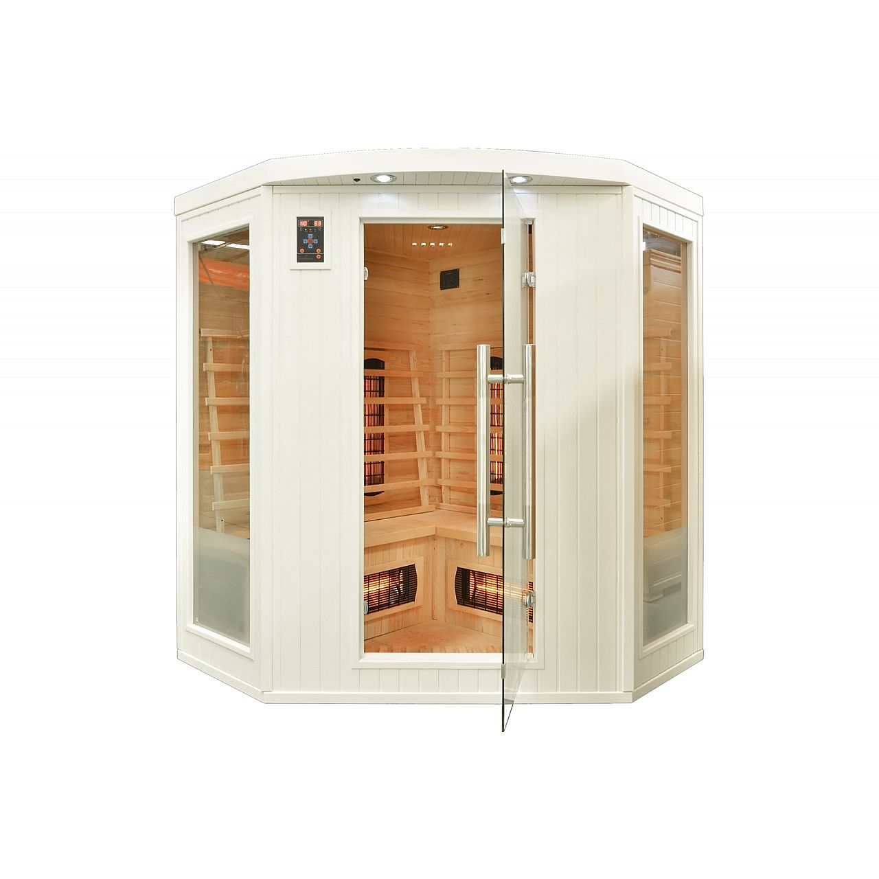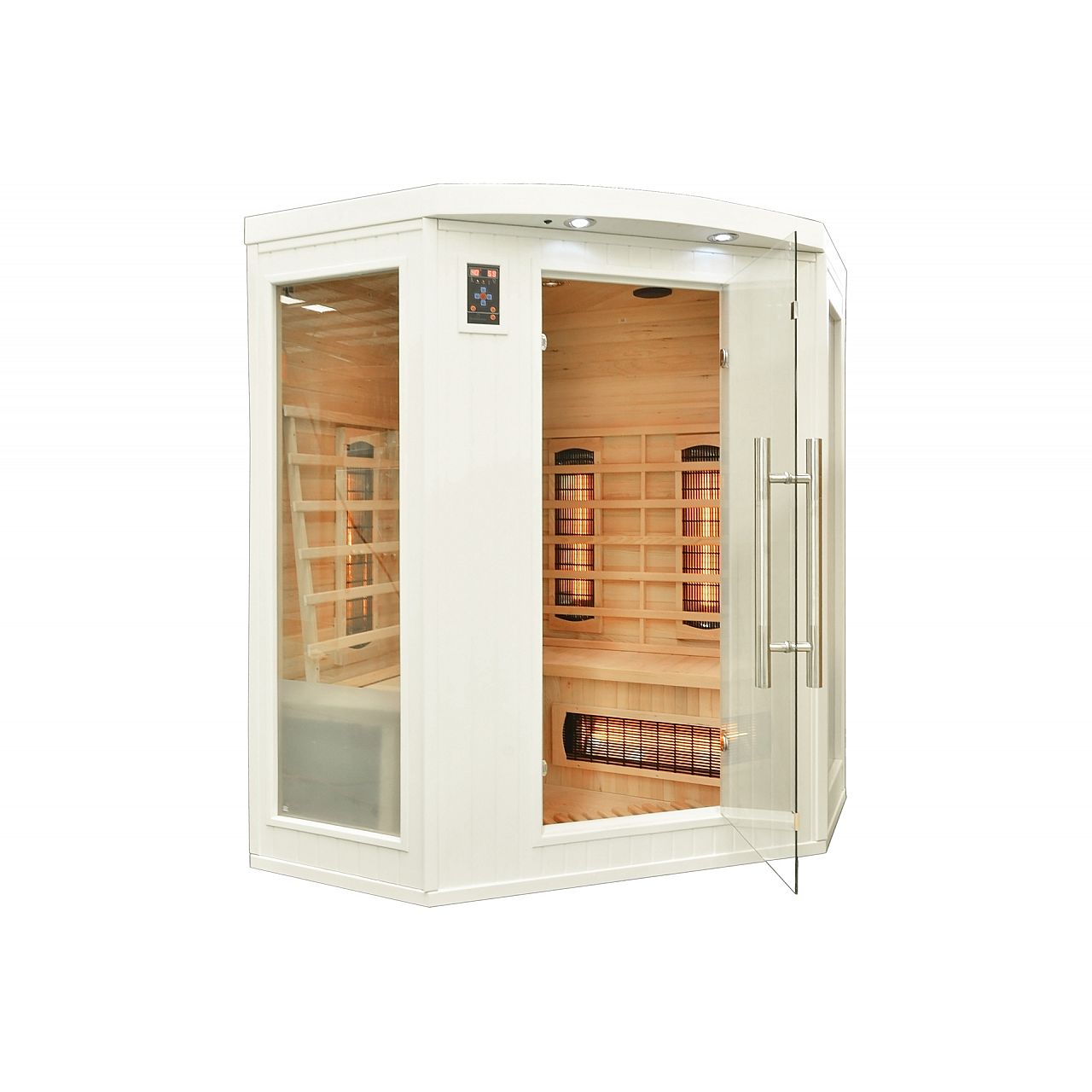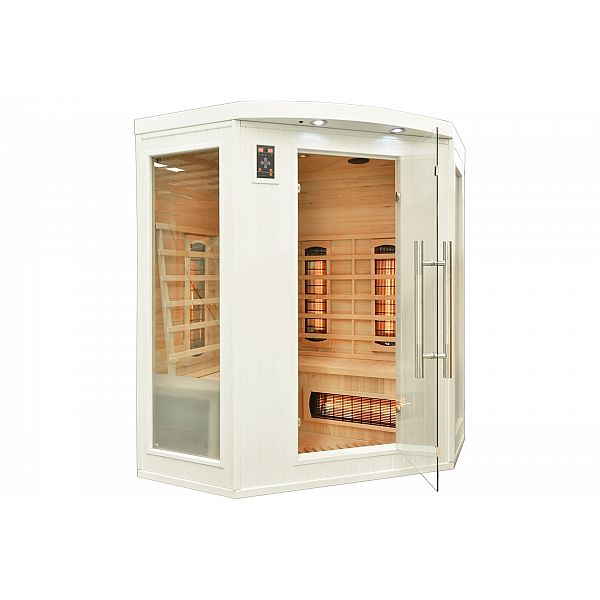 Інфрачервона сауна (інфрачервона, низькотемпературна) без пари і з низькою температурою повітря (до 60°C), де замість традиційних печей використовуються кварцові, керамічні або вугільні інфрачервоні обігрівачі. Кабіну з канадської ялиці можна встановити у ванній, спальні, вітальні або будь-якій іншій кімнаті. Для роботи достатньо звичайного джерела живлення 230В. Після ввімкнення сауна налаштована на заводі на 60 хвилин. Він має автоматичний вимикач, який запобігає випадковому залишанню сауни увімкненою на надто тривалий час, що робить її безпечною у використанні. Радіатори захищені дерев'яними сітками.
