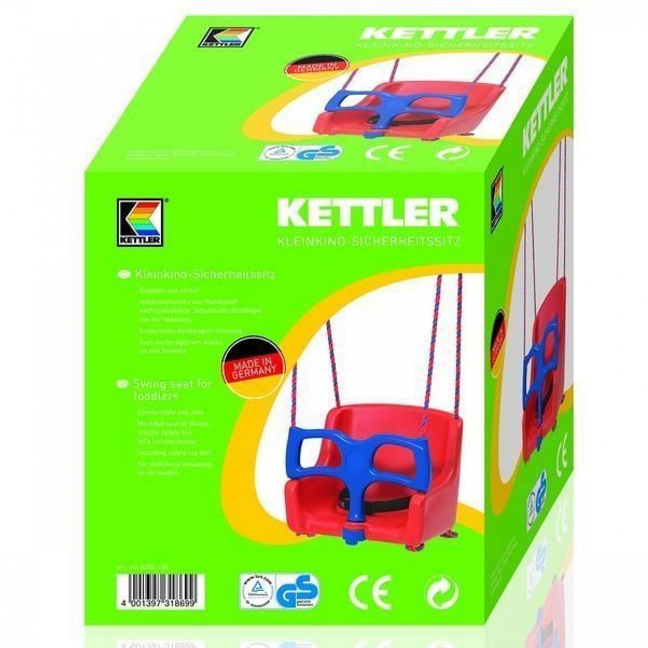 Дитяче сидіння Kettler для маленьких дітей виконане з безпечного пластику, оснащене поясним ременем безпеки, який можна заблокувати в опущеному стані. Екологічний, сучасний матеріал, що використовується під час виробництва виробу, проходить відповідні сертифікації. Завдяки подвійній системі утримання дитини (ременя та поручня) дозволяють надійно закріпити дитину. Сам процес катання в таких зручних гойдалках принесе масу вражень вашій дитині.