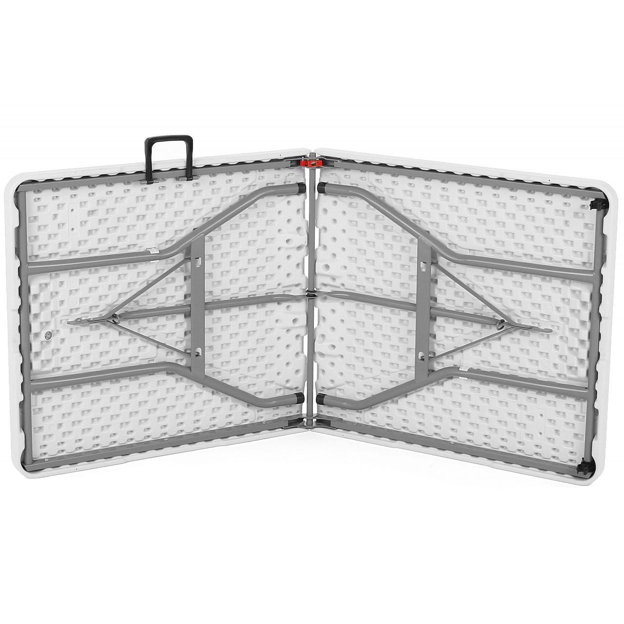 Кейтеринговий стіл є незамінним елементом обладнання будь-якого виїзного заходу. Чудово підійде як для весільного фуршету на природі, так і для зустрічі друзів на шашлику на ділянці відпочинку. Також це предмет меблів, який можна використовувати для облаштування виставкового стенду або торгового намету. Наш стіл для громадського харчування має сталеву конструкцію з порошковим покриттям і стільницю з міцного поліетилену. Вся справа складається в практичну валізу - для перенесення використовується спеціальна ручка. Ніжки укріплені кронштейнами, а в розкладеному стані фіксуються сталевим замком.