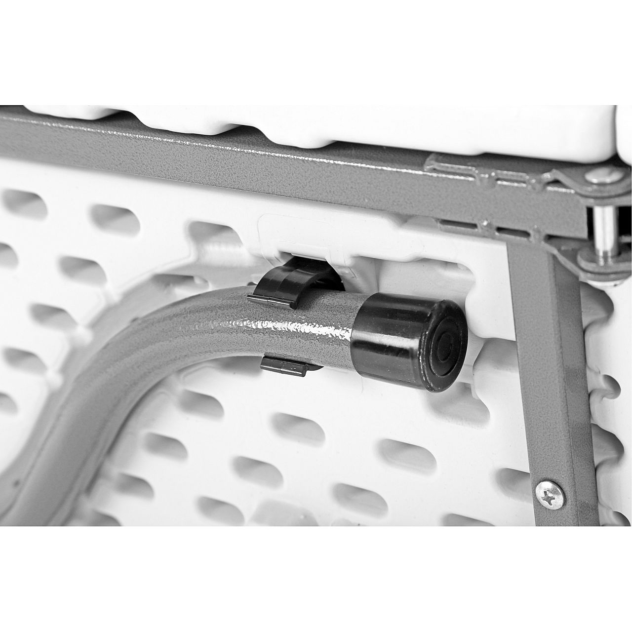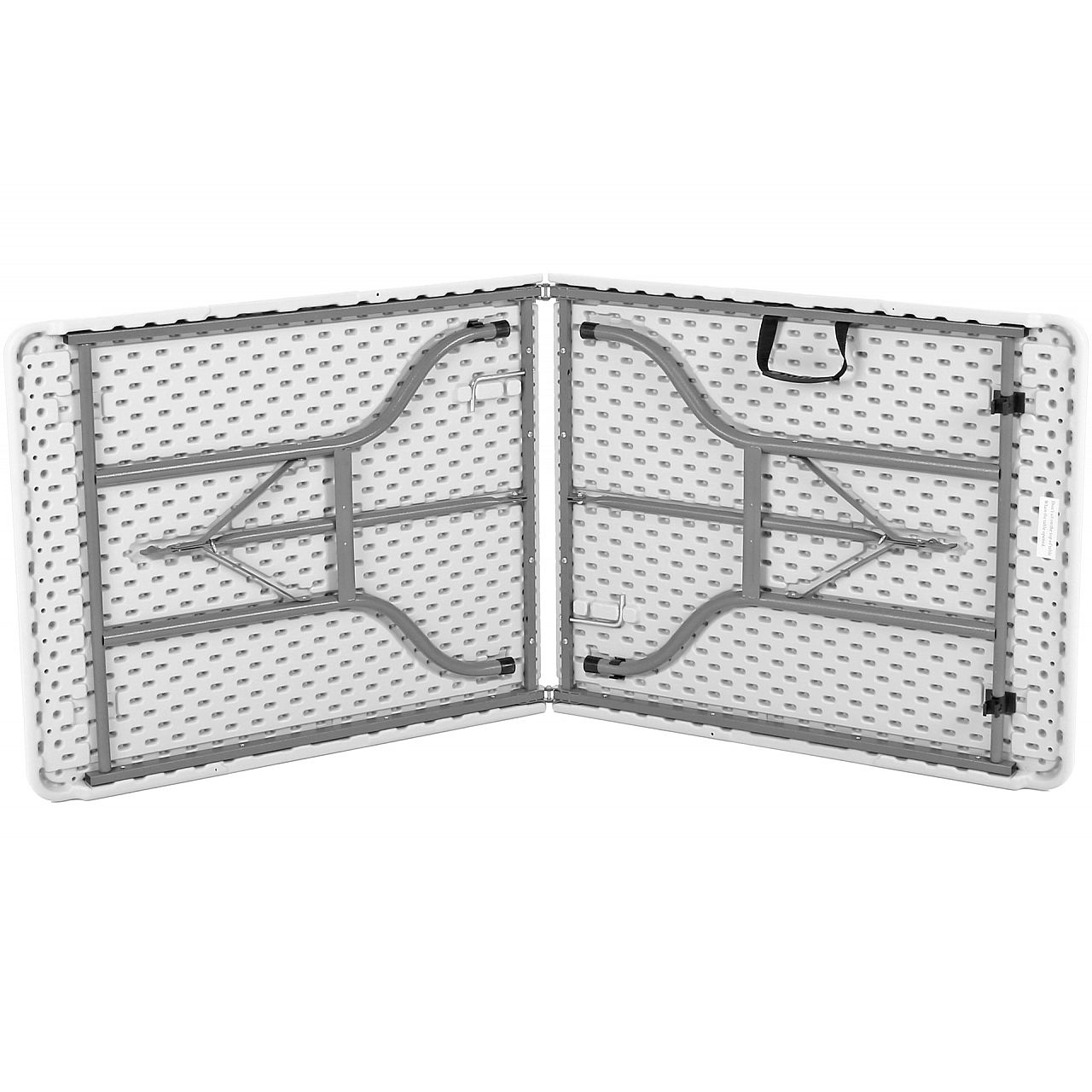 Цей предмет меблів відрізняється не тільки практичною розкладною конструкцією. Він також має тверду обробку. Використання сталі з порошковим покриттям гарантує довговічність і стійкість конструкції до зовнішніх факторів, завдяки чому банкетний стіл прослужить довгі роки. Стільниця з міцного поліетилену не тільки легко миється, але й стійка до подряпин і ударів, що вкрай важливо під час різноманітних заходів.