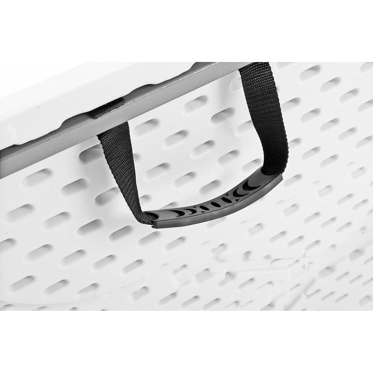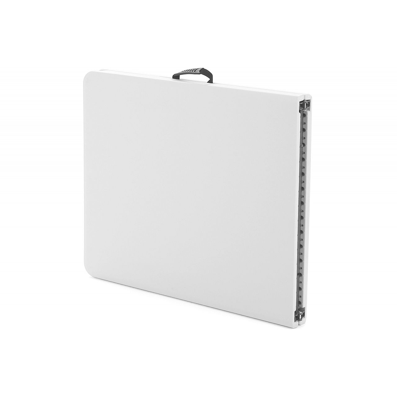Прямокутна форма стільниці має білий колір, який є універсальним і позачасовим. Великою перевагою є те, що все це складається в практичну валізу. Спеціальна тканинна ручка, покрита м'яким силіконом, забезпечує комфорт під час носіння без надмірного навантаження на руку або зап'ястя. Столик для сервірування завжди можна мати при собі в машині або в кузові компанії.