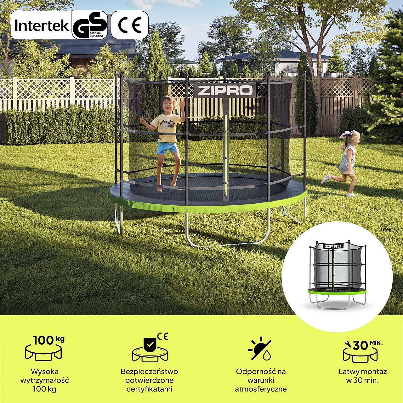 Батут ZIPRO Jump Pro IN з внутрішньою сіткою був розроблений для того, щоб забезпечити користувачам безтурботне задоволення. Він дуже простий у збірці та надзвичайно міцний, що робить його придатним для тривалого та інтенсивного використання.