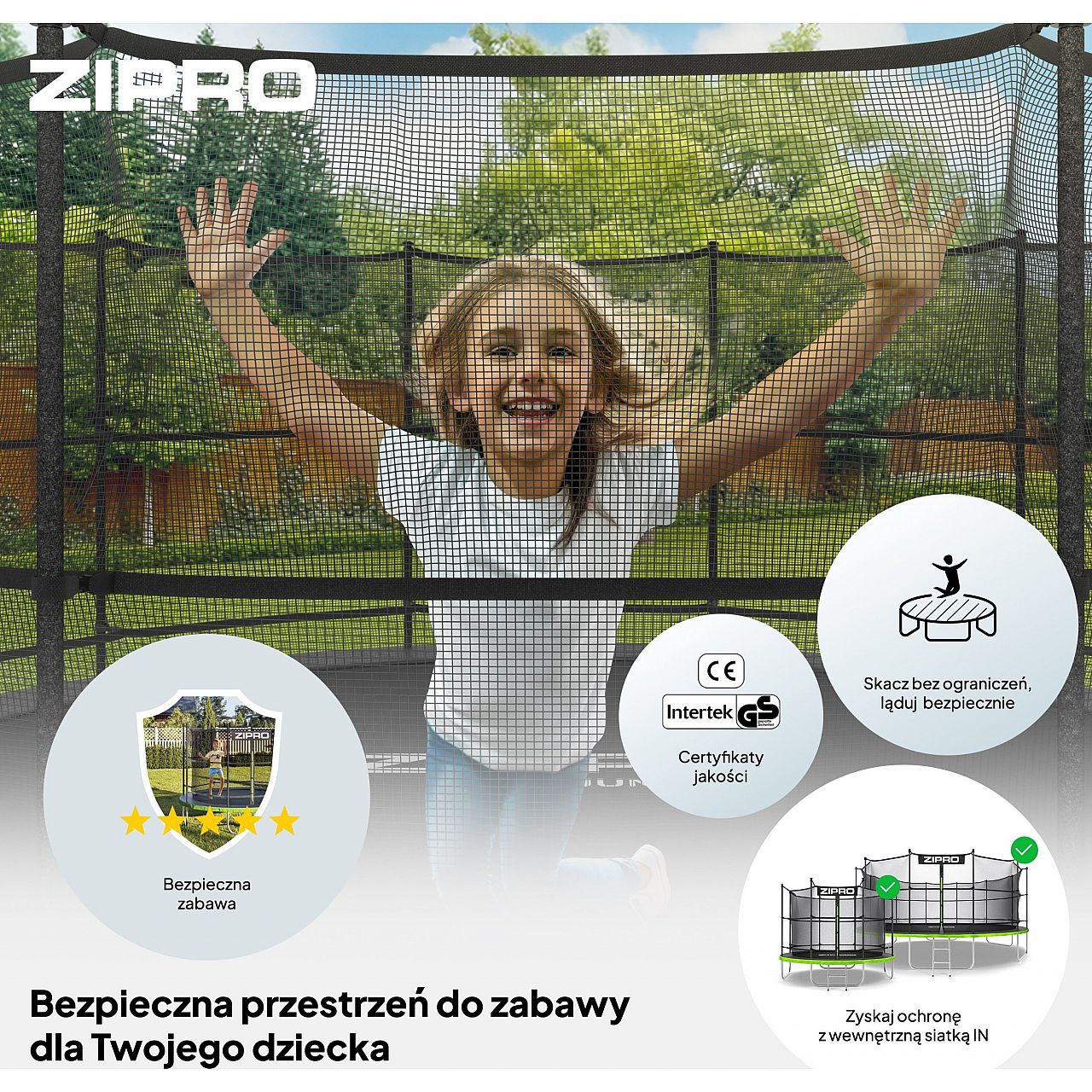 Батути ZIPRO відповідають усім вимогам та стандартам безпеки. Впроваджені рішення створюють повністю безпечне середовище навіть для найменших. Щоб забезпечити безтурботну гру дітей та спокій батьків, розробники батута ZIPRO Jump Pro IN з внутрішньою сіткою працювали безкомпромісно, оснастивши його всім необхідним для справді приємних вражень.