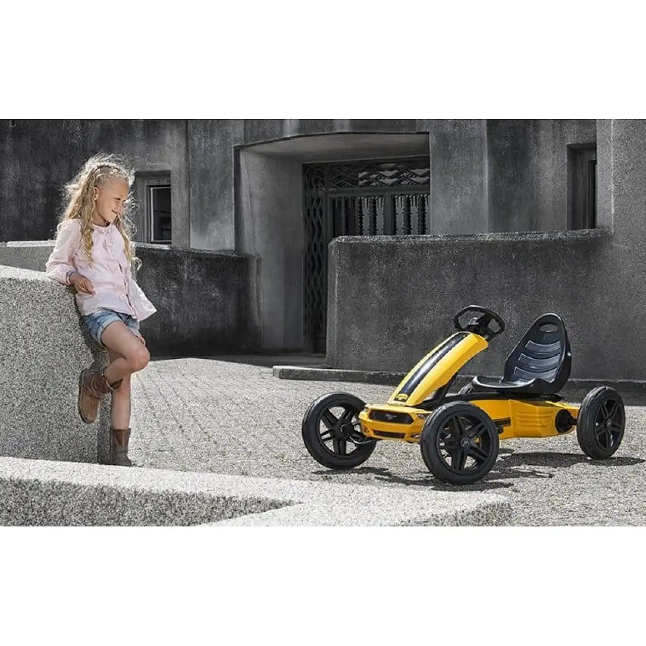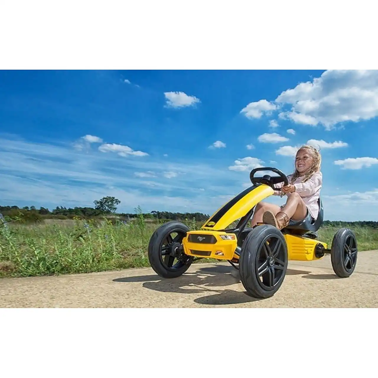 Веломобіль BERG Ford Mustang GT BFR (арт. 24.40.20.00) виконаний в стилі самої популярної класичної моделі автомобіля Ford. Привод BFR забезпечує швидке обожання, аневреність і легкий задній хід. Широкі накладні рейки, гвинтові "суцільні" диски, регульована висока рула і сиденія, яскравий підмітальний колір.