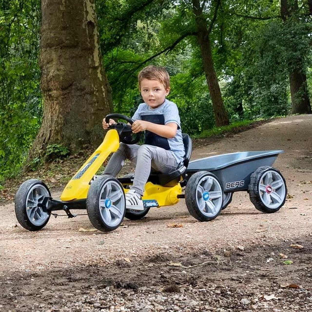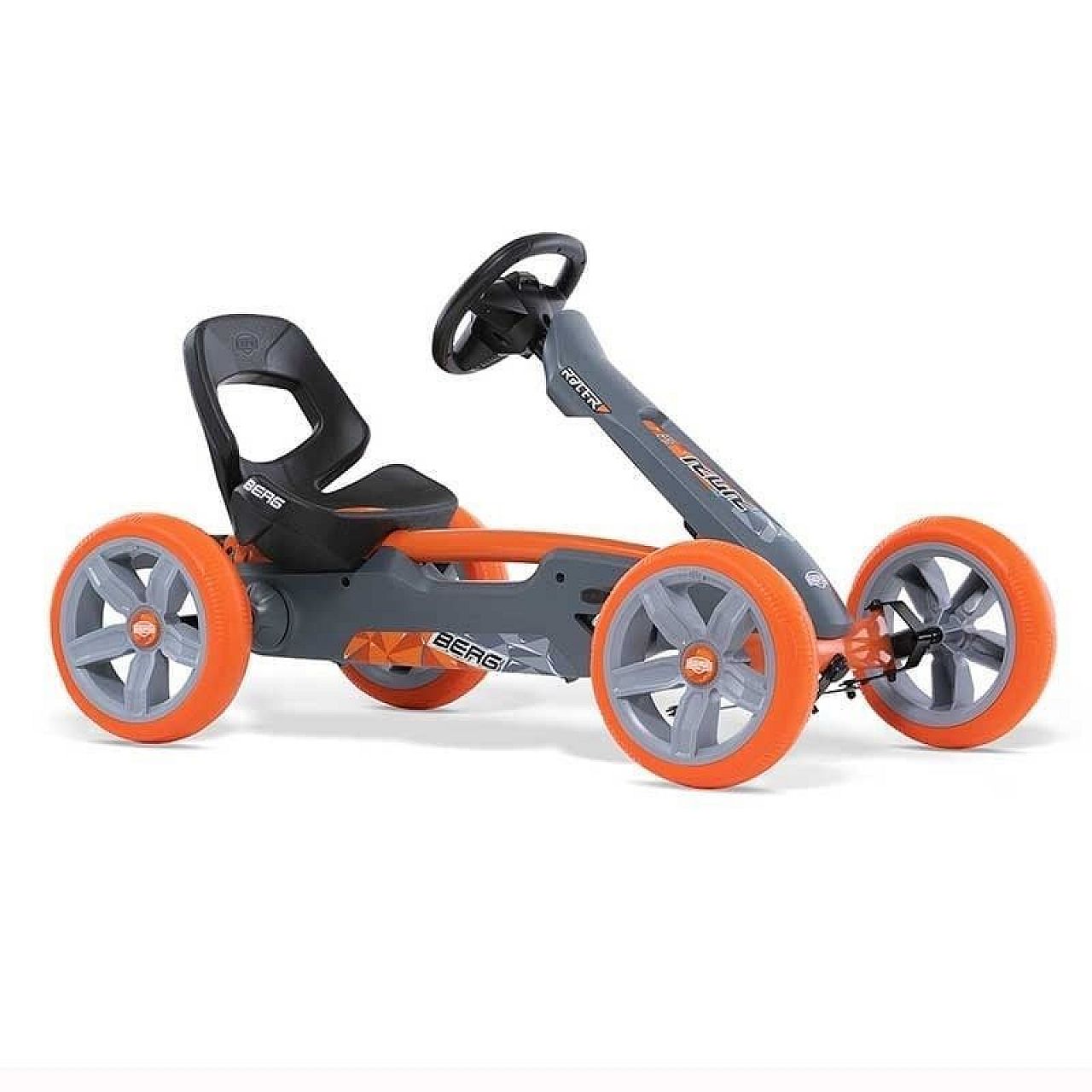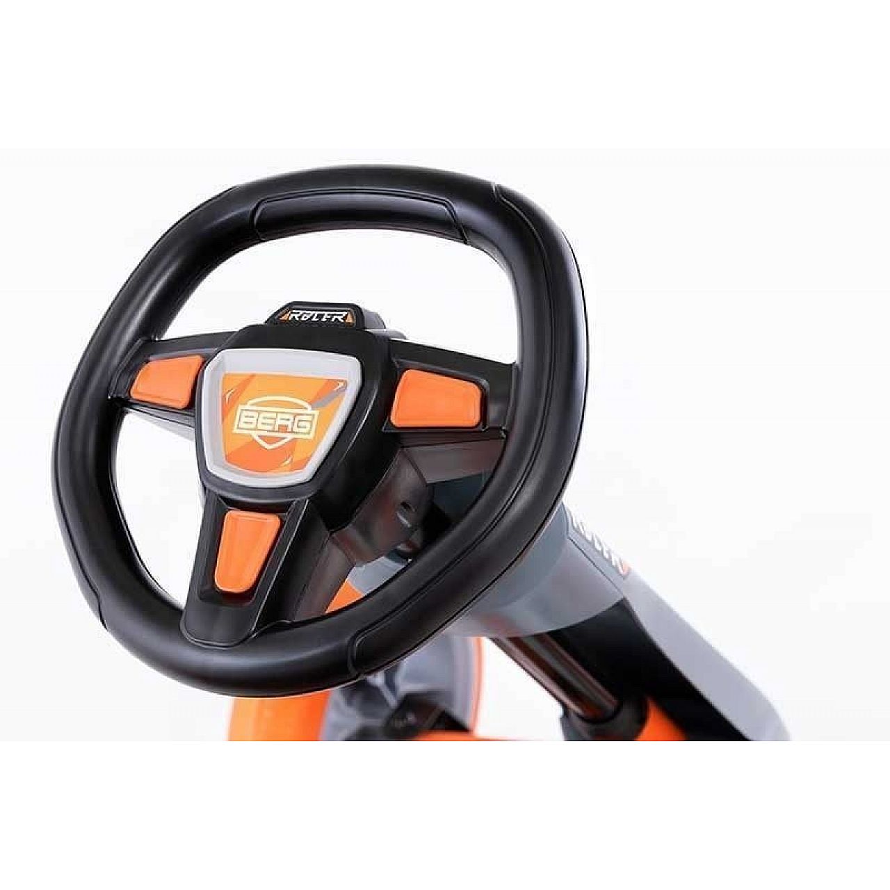 Характерне спортивне кермо, шини з EVA, що ніколи не проколюються, стильне ковшеподібне сидіння та поворотна вісь роблять їзду на картингу дуже захопливою. Завдяки низькому ковшеподібному сидінню BERG Reppy — це перший картинг для маленьких дітей зі справжнім низьким входом, як у картингу. Коли діти катаються тротуаром на Reppy, усі погляди будуть прикуті до них. Завдяки BERG Soundbox усі чутимуть, коли ваша дитина запускає двигун, розганяється або гальмує!