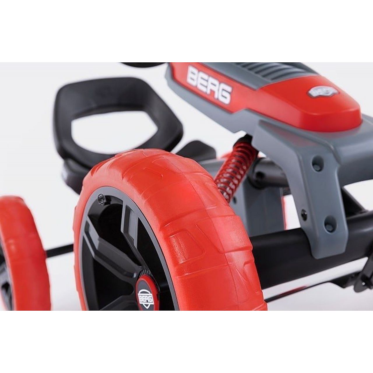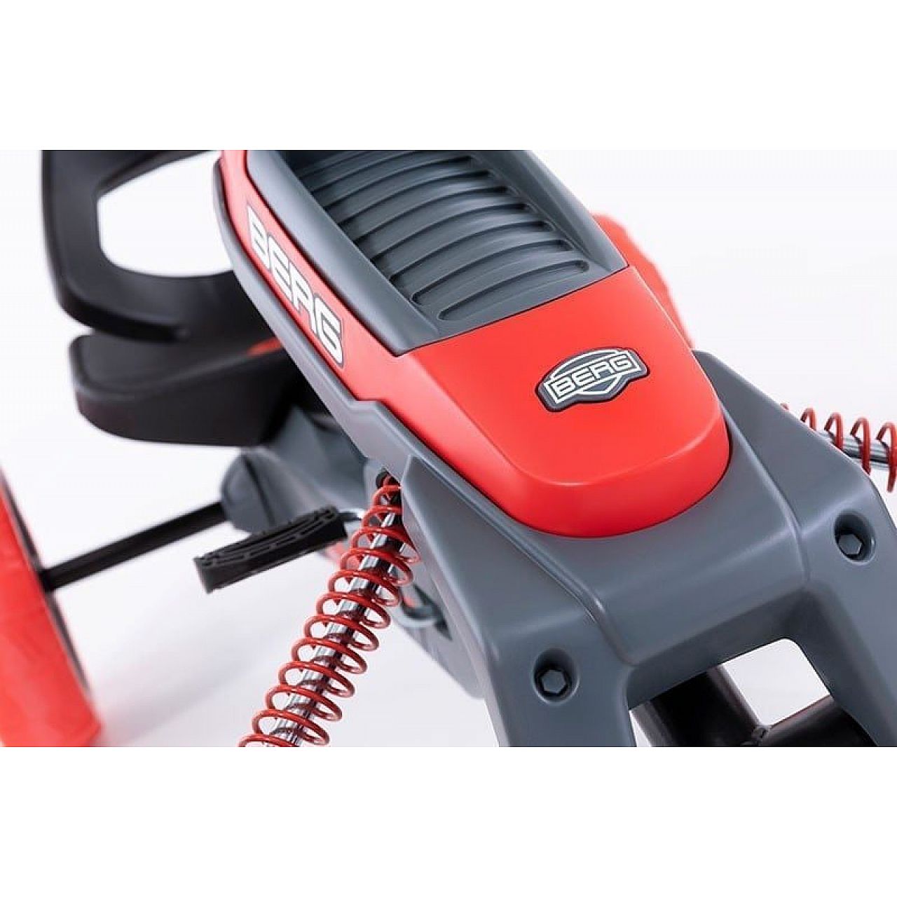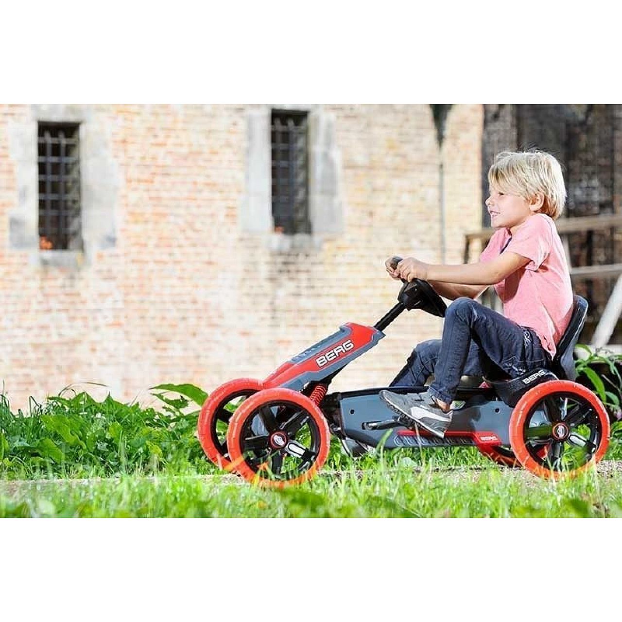 Характерне спортивне кермо, шини з EVA, що ніколи не проколюються, стильне ковшеподібне сидіння та поворотна вісь роблять їзду на картингу дуже захопливою. Завдяки низькому ковшеподібному сидінню BERG Reppy — це перший картинг для маленьких дітей зі справжнім низьким входом, як у картингу. Коли діти катаються тротуаром на Reppy, усі погляди будуть прикуті до них. Завдяки BERG Soundbox усі чутимуть, коли ваша дитина запускає двигун, розганяється або гальмує!