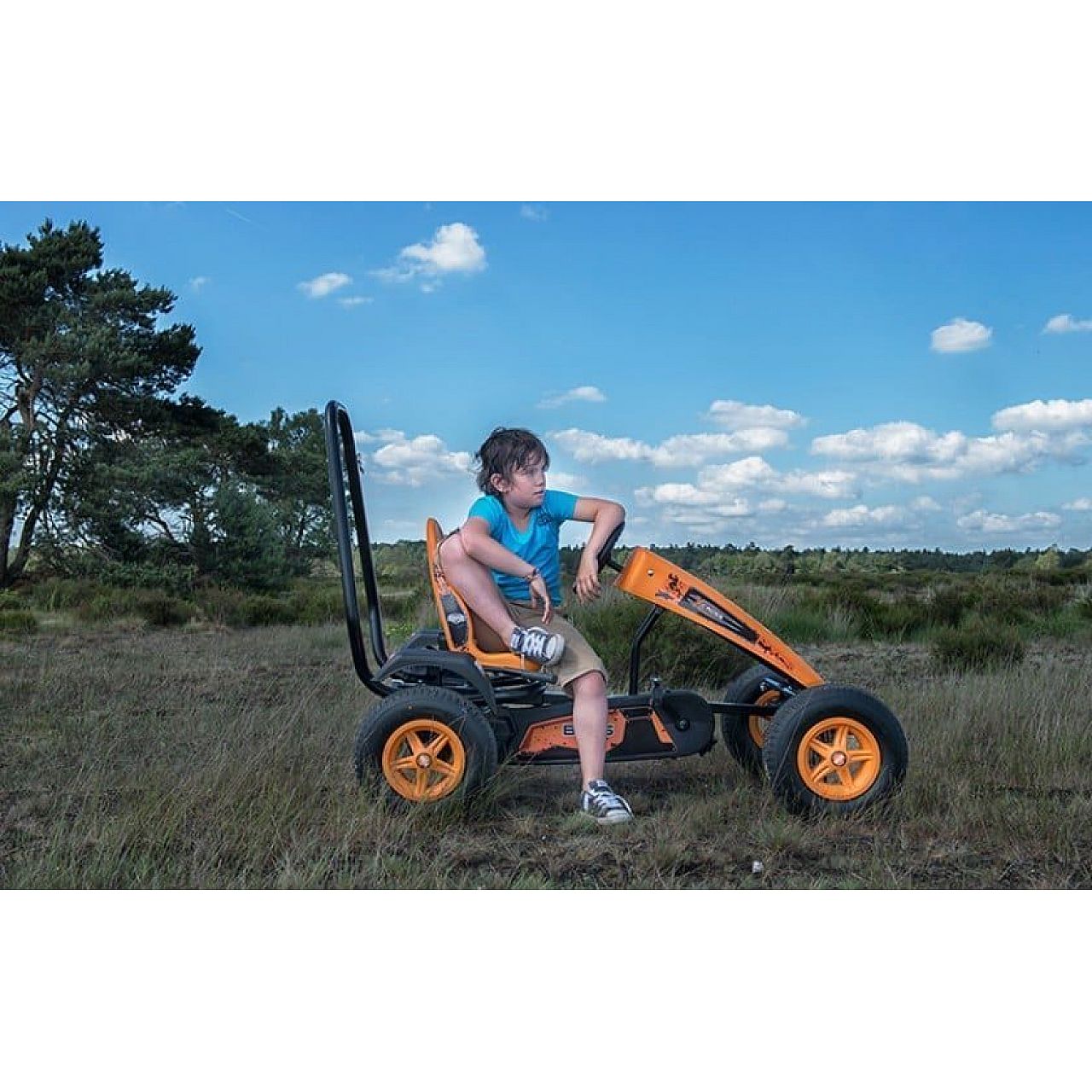 Веломобіль BERG X-Cross BFR (арт. 07.10.08.00) - новий привод BFR (передназадтормоз педалями) і додатковий ручний о тормоз! Яркий оранжево-чорний дизайн - він не залишиться незмивним. Усовершенстванный привод також гарантує плаваючу рулетку і плаваючий рух. Першокласна каденція та фантазійний дизайн. Дуга безпеки і запасне колесо не входить в стандартний комплект і є додатковою опцією!