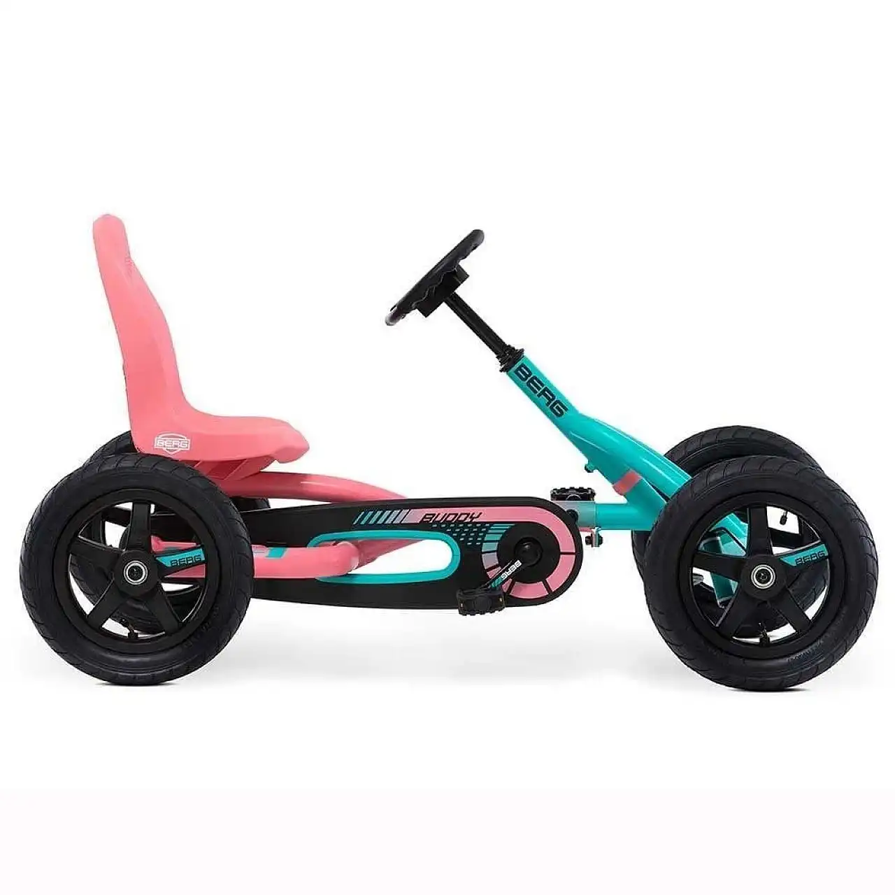 Buddy Lua - новий весняний і рожевий картинг від BERG. Buddy's linea, з 5-кінцевими смоляними рейками та колючим колючим каркасом – щаслива модель для юного мисливця.