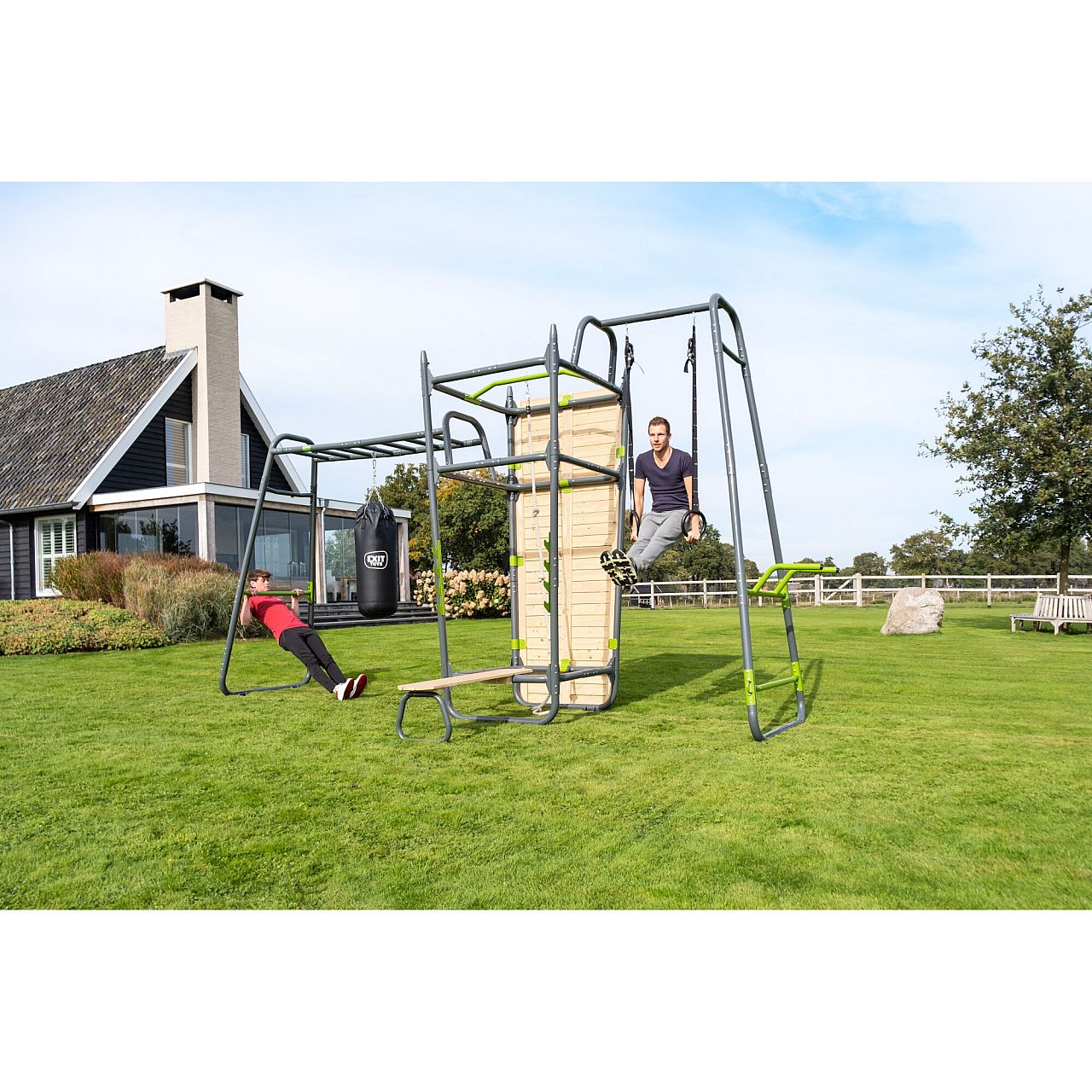 Воркаут Exit GetSet MB620 (кросфіт станція) - інноваційна розробка від Exit Toys Нідерланди. Це вулична багатофункціональна фітнес станція для занять кросфітом дорослими та дітьми. Модерновий дизайн, компактний формат, неперевершена якість, унікальний товар на ринку України.