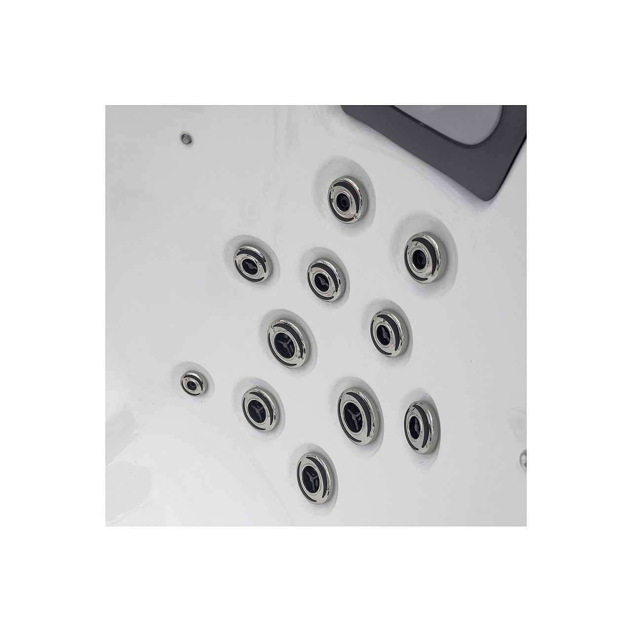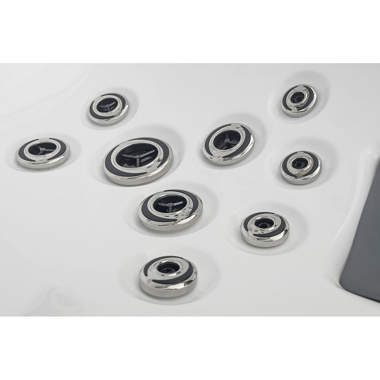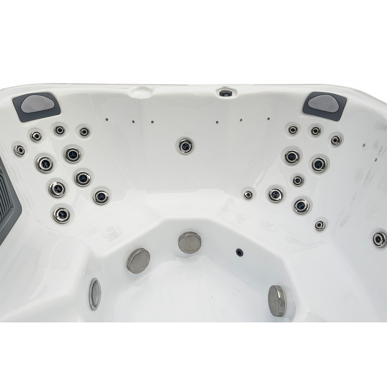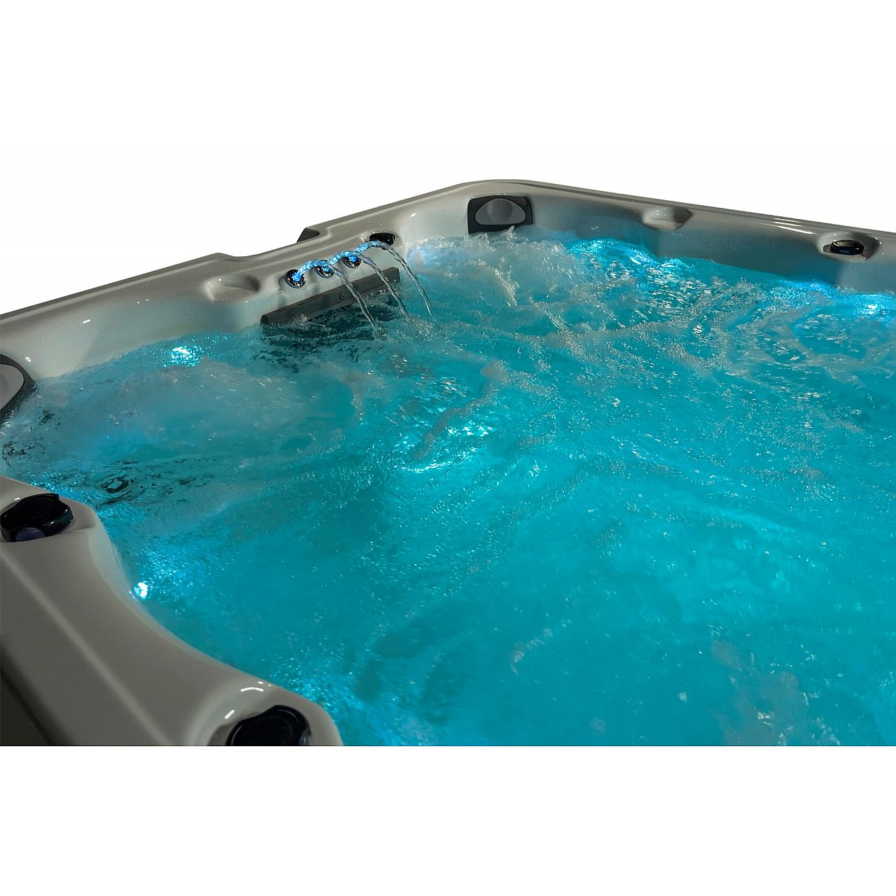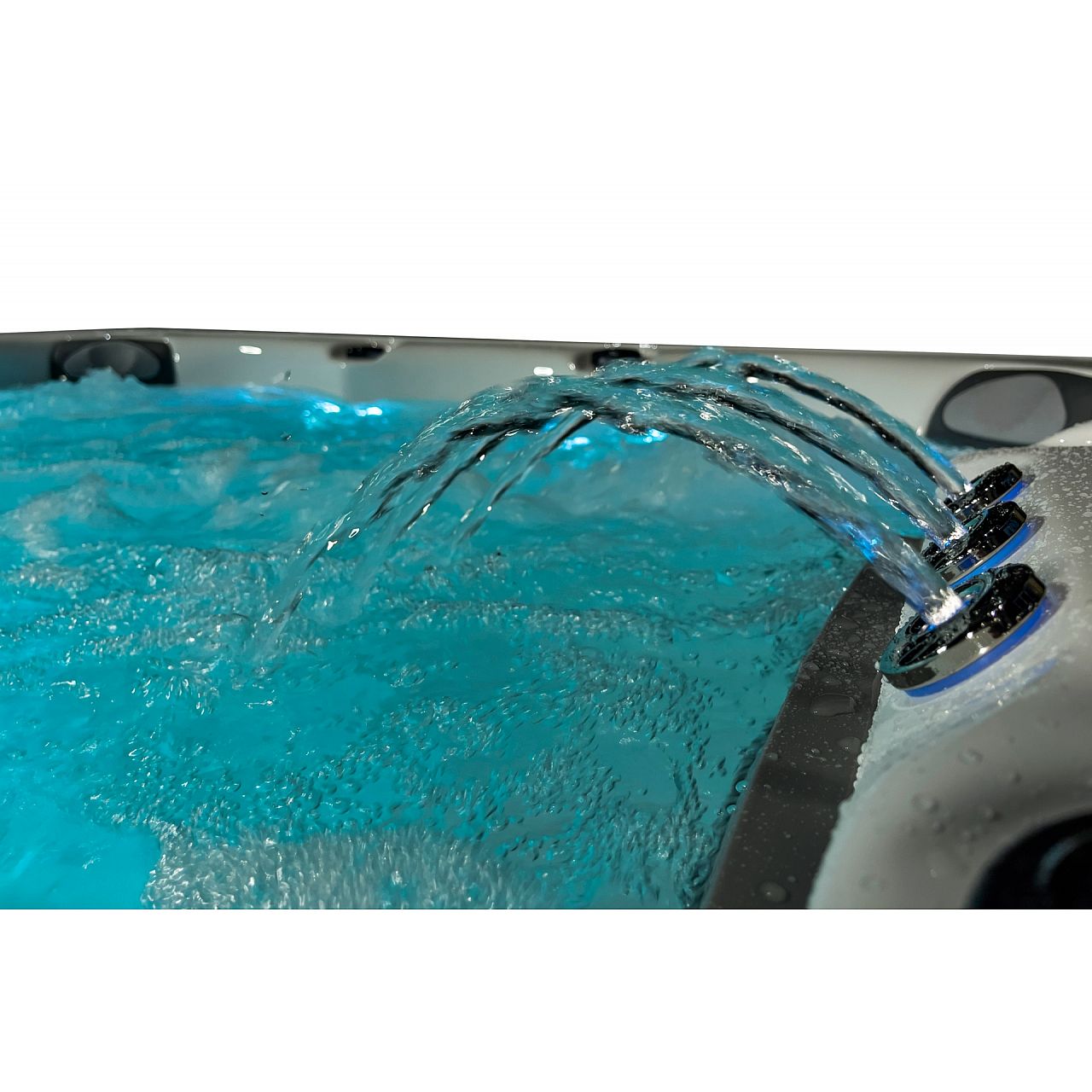 | Обладнання | два двошвидкісні насоси потужністю 3 к.с., панель керування Balboa, водонагрівач потужністю 2000 Вт, підводне світлодіодне освітлення зі зміною кольору, система фільтрації, циркуляційний насос, озонатор, регулятор повітря, водяний клапан, злив, водоспад, термочохол |