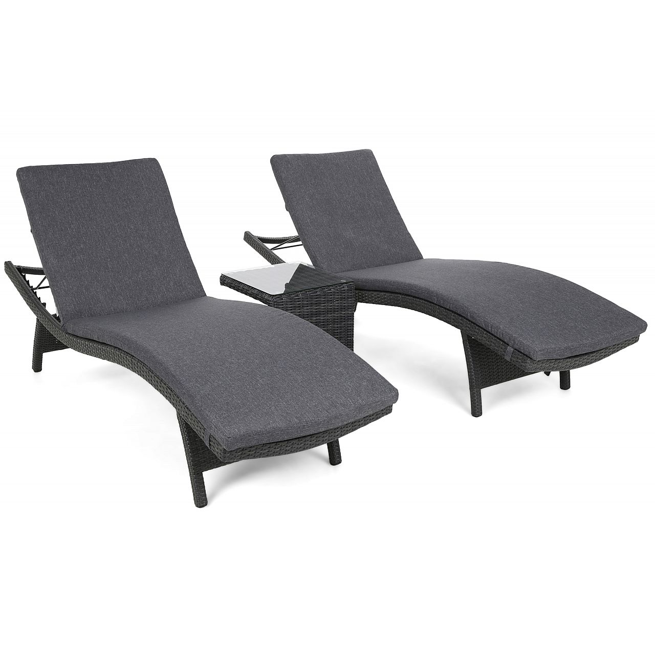 Комплект складається з двох великих зручних кушеток і маленького, але надзвичайно практичного столика. Як і всі пропоновані нами садові шезлонги, меблі з представленого набору оснащені багатоступінчастою (тут саме 7-ступінчастою) регулюванням спинки. Завдяки цьому шезлонг можна легко відрегулювати відповідно до індивідуальних уподобань і поточних потреб, наприклад, під час прийняття сонячних ванн або читання.