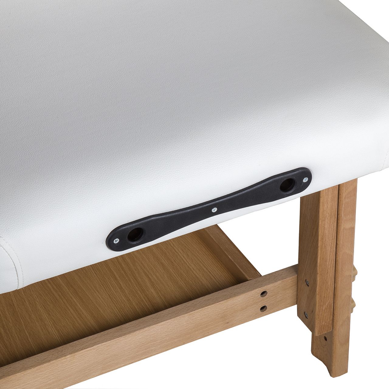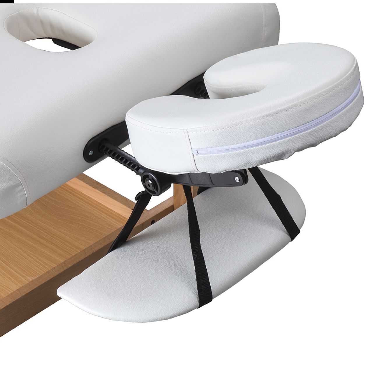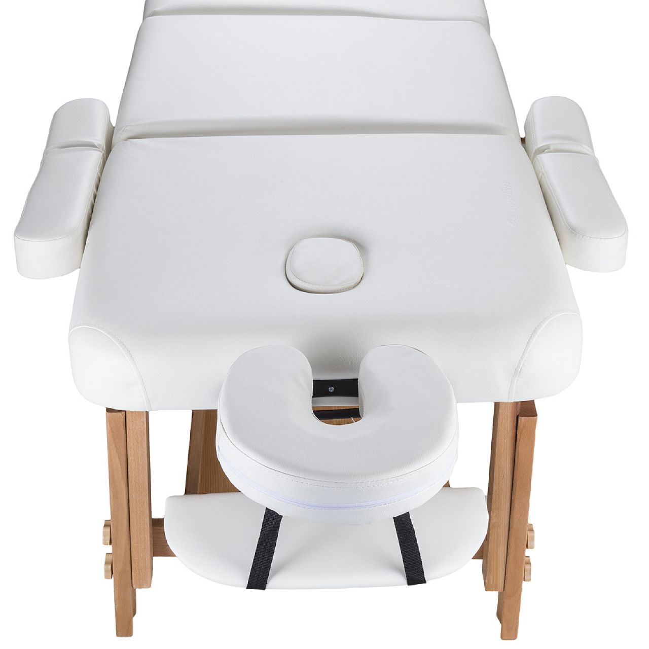 Подголовник, который выполняет функцию второго отверстия для лица, также можно использовать как подушку. По бокам каркаса кровати есть большие ручки, на которые можно повесить, например, полотенца. Под обивкой находится полка, которая не только увеличивает устойчивость кровати, но также может использоваться как место для хранения различных массажных принадлежностей. Эти свойства делают массажный стол inSPORTline Reby идеальным функциональным оборудованием для любого массажного салона.