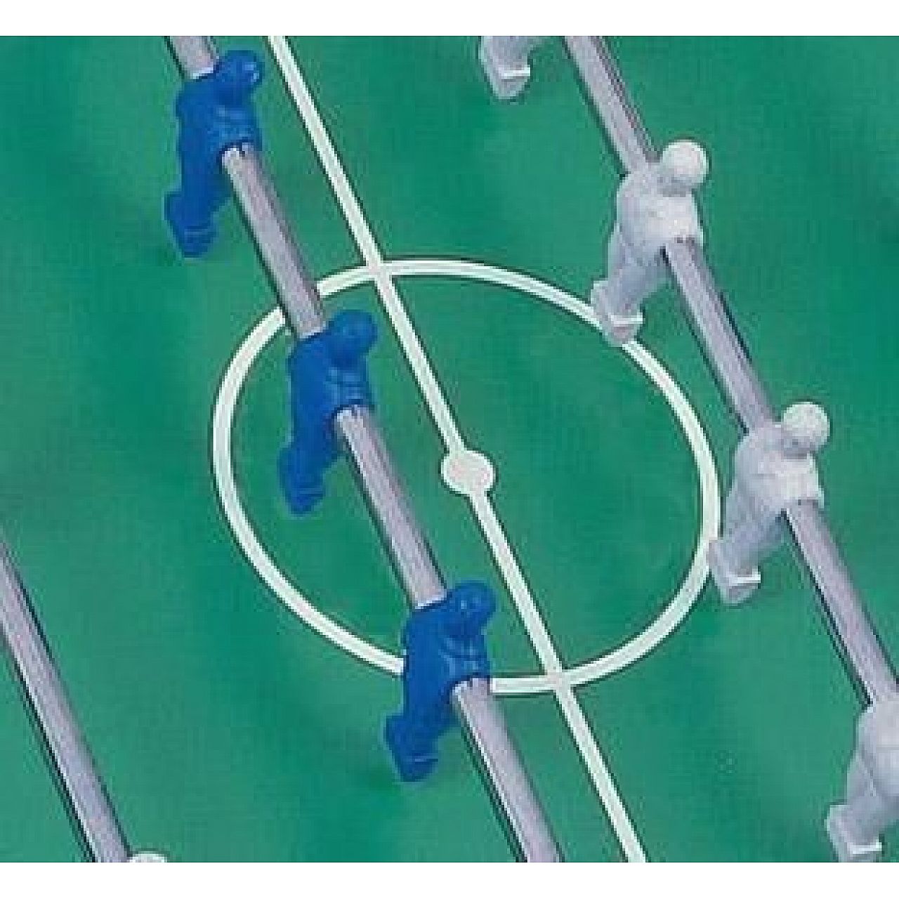 Игровое поле из зеленого пластикового ламината, склеенного с использованием специальных водонепроницаемых клеев. Белые линии, воспроизводящие футбольное поле, напечатаны шелкографическим шрифтом с использованием специальных чернил: они не исчезают под солнцем и не повреждаются сыростью.