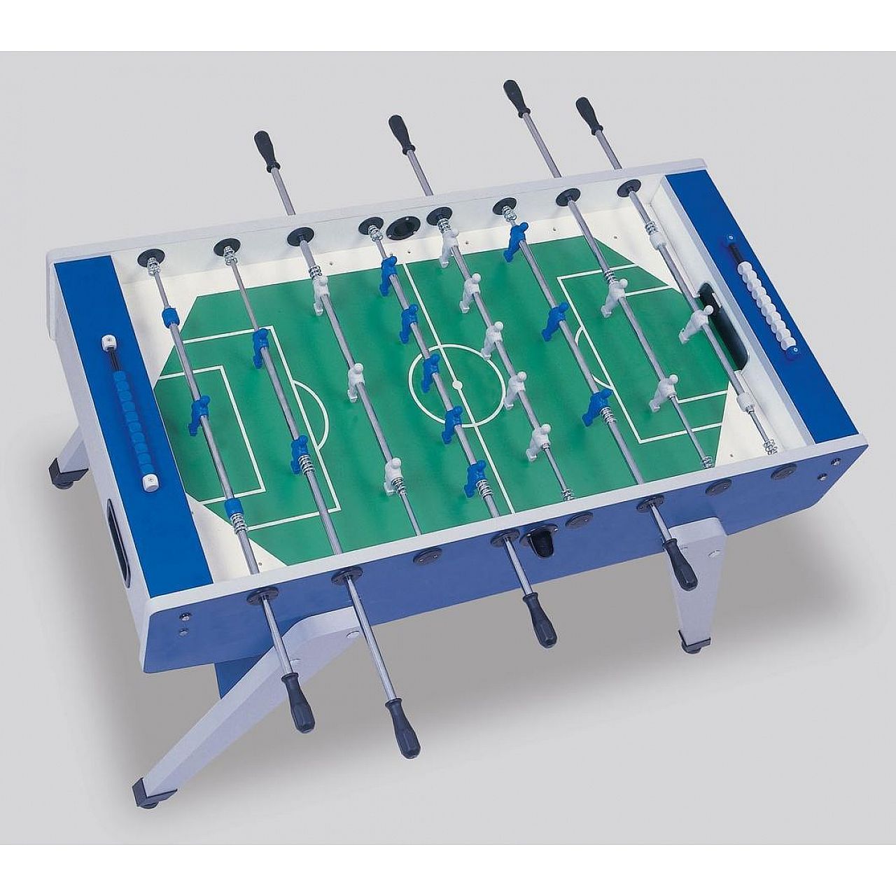 Элегантные косые ножки с перекрестком из МДФ, покрыты пластиковым ламинатом и краями ПВХ, с замечательной толщиной (4 см = 1 + 1/2 дюйма) для отличной стабильности на земле. Ножки с перекрестком соответствуют цветам корпуса для повышения элегантности. Каждая ножка имеет регулируемый выравниватель для совершенно ровного игрового поля. Выравниватели можно установить вручную, без необходимости разборки ножек.