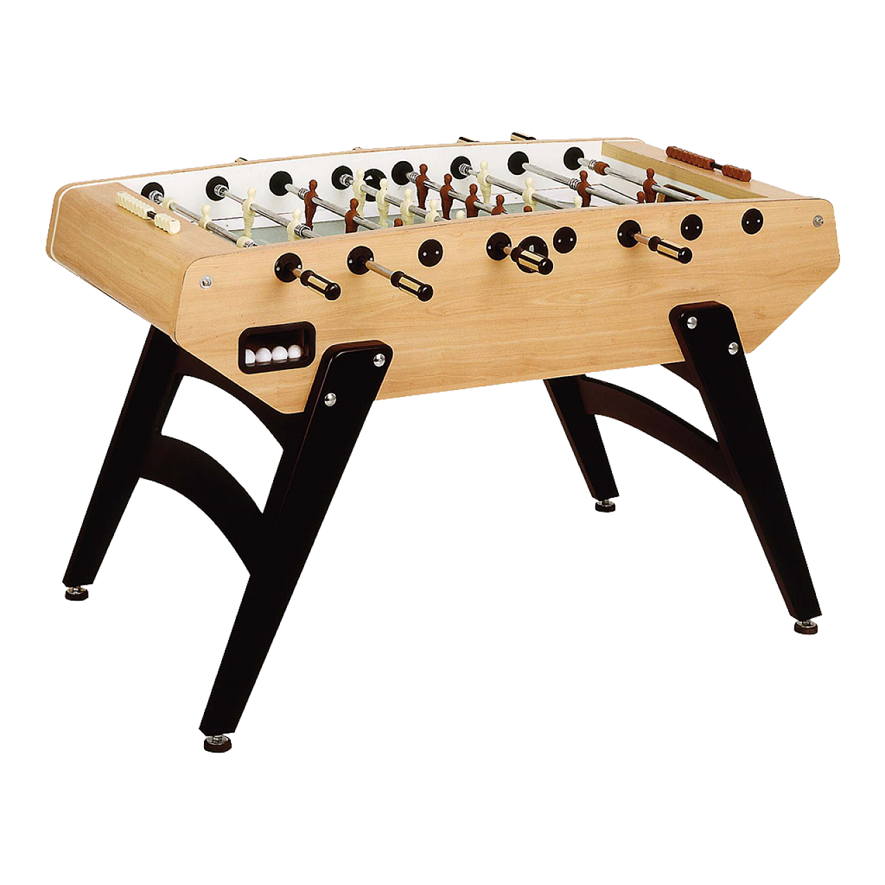 Garlando G-5000 выделяется от других моделей благодаря таким деталям, как пластиковые ручки с деревянной вставкой для более удобного захвата, регулировка высоты ножек, идеально ровное игровое поле, где бы вы не хотели играть, и неотражающее свет игровое поле из песочного стекла.