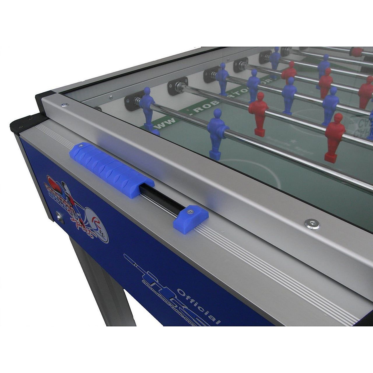 Настольный футбол College Pro Cover – это первый любительский футбольный стол от Roberto Sport, который имеет сверху закаленное небьющееся стекло, что делает стол более безопасным, предотвращая возможность поместить руки рядом с фигурками или коснуться мяча. Кроме того, мяч не может вылететь из-за стола и в конечном итоге не может быть убран. Наличие покрытия над игровым полем значительно уменьшает звук матча. Для этих характеристик он считается лучшим выбором для школ и институтов, где безопасность молодых людей является приоритетом.