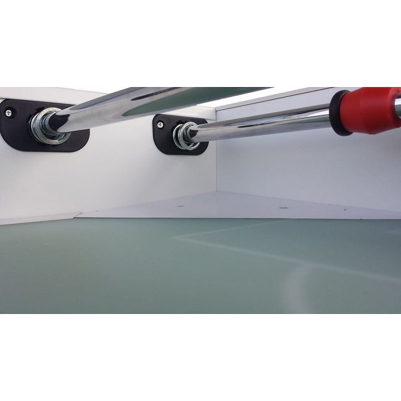 Резиновые пружины заменены стальными пружинами. Поставляется с телескопическими штангами, диам. 18, с красно-синими футбольными фигурками. Эти фигурки имеют круглые ножки для идеального контроля над мячом.