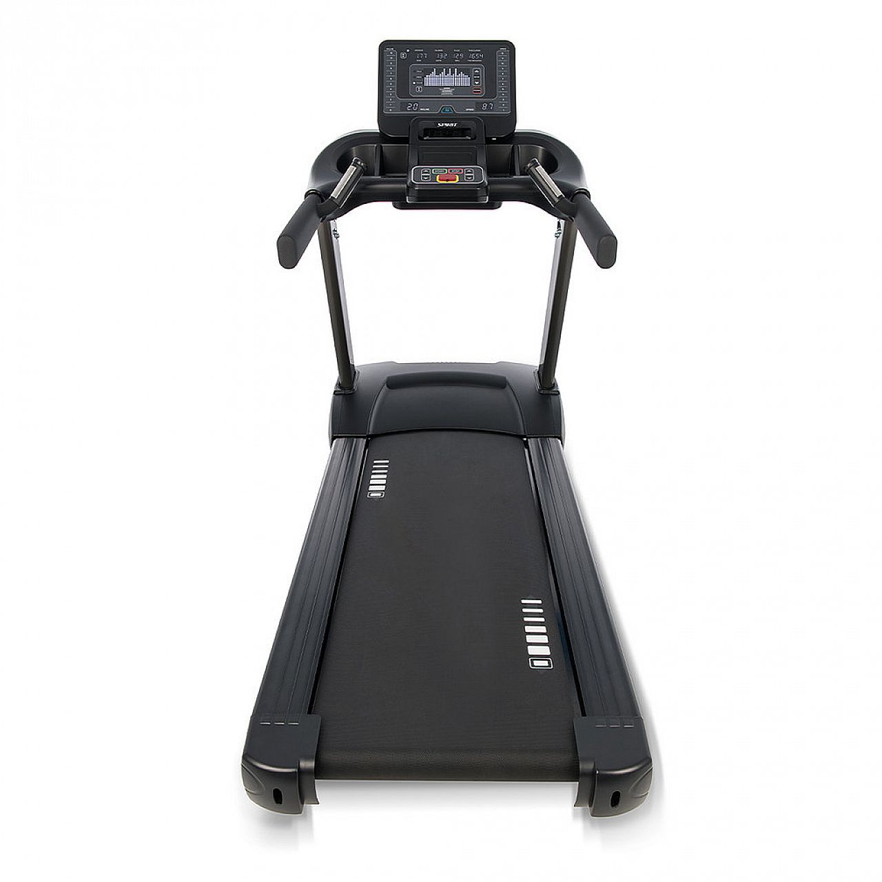 - Консоль управления - удобная и интуитивно понятная даже для неопытных пользователей. Дисплей консоли оснащен большим графическим LED дисплеем с приятным голубым цветом свечения светодиодов. Также на консоли расположены 5 цифровых LED дисплеев с янтарным свечением и линейка светодиодных индикаторов порогового пульса (сердечный монитор);