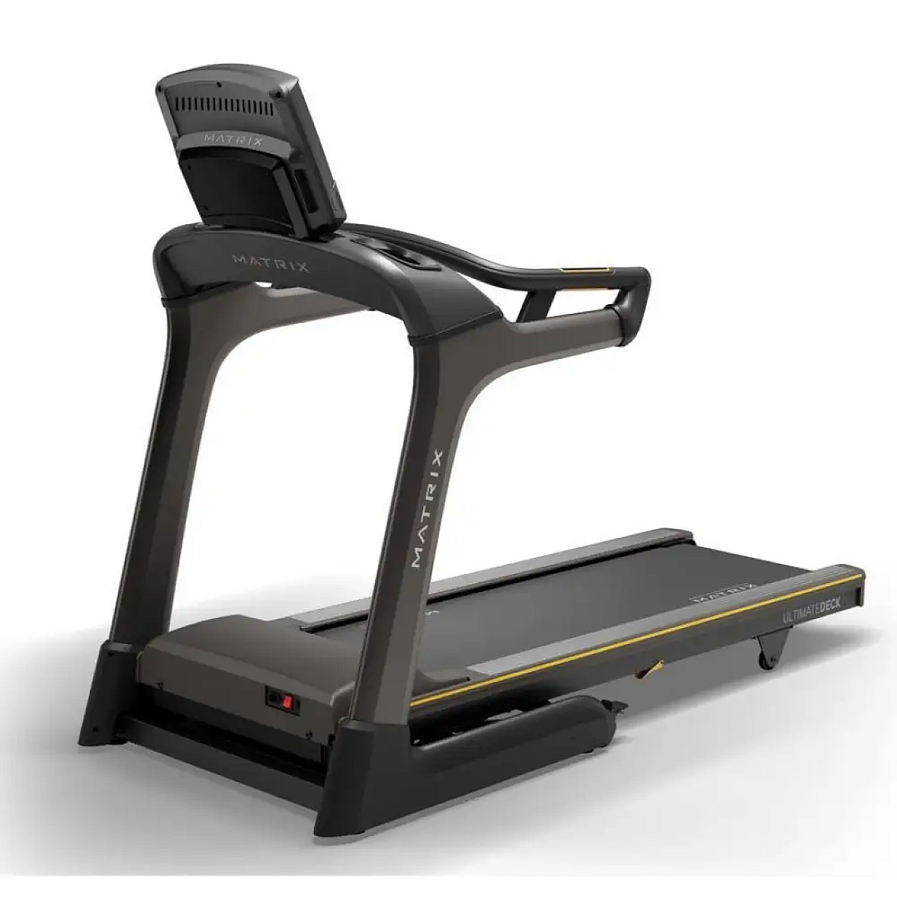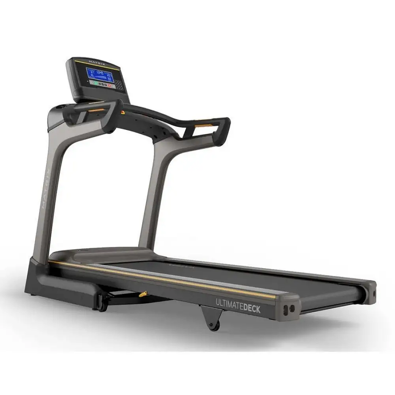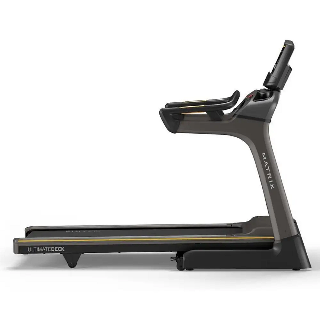 Беговая дорожка Matrix компактна, состоит из высококачественных компонентов и поражает двигателем мощностью 3,25 л. (система привода Johnson). Мощный двигатель работает очень тихо и очень плавно. Он не требует обслуживания и имеет очень длительный срок службы.