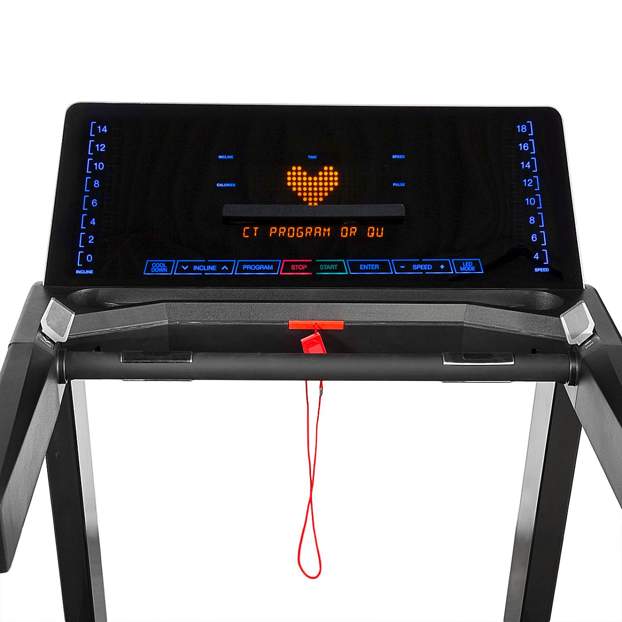 Эргономичная панель с LED-дисплеем обеспечивает легкое управление тренировками. Для быстрой настройки скорости и угла наклона используйте джойстики. Среди программ есть специальный низкоскоростной режим для пожилых людей, который гарантирует безопасность и комфорт. Стильный дизайн тренажера дополняется LED-подсветкой беговой ленты.
