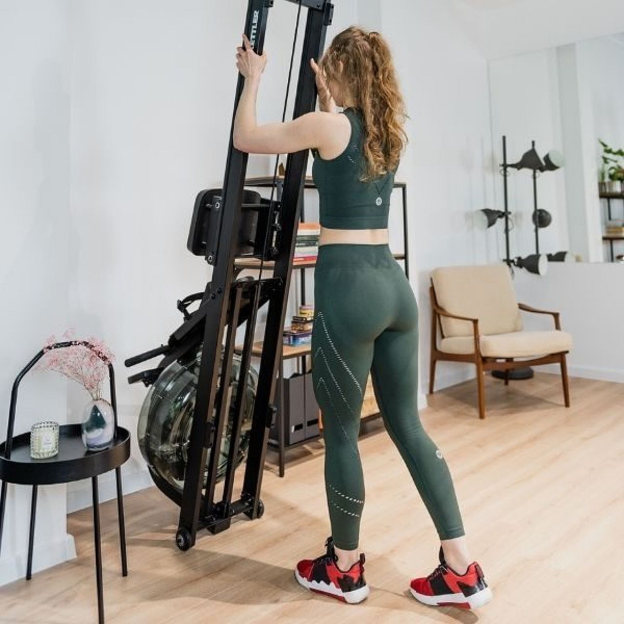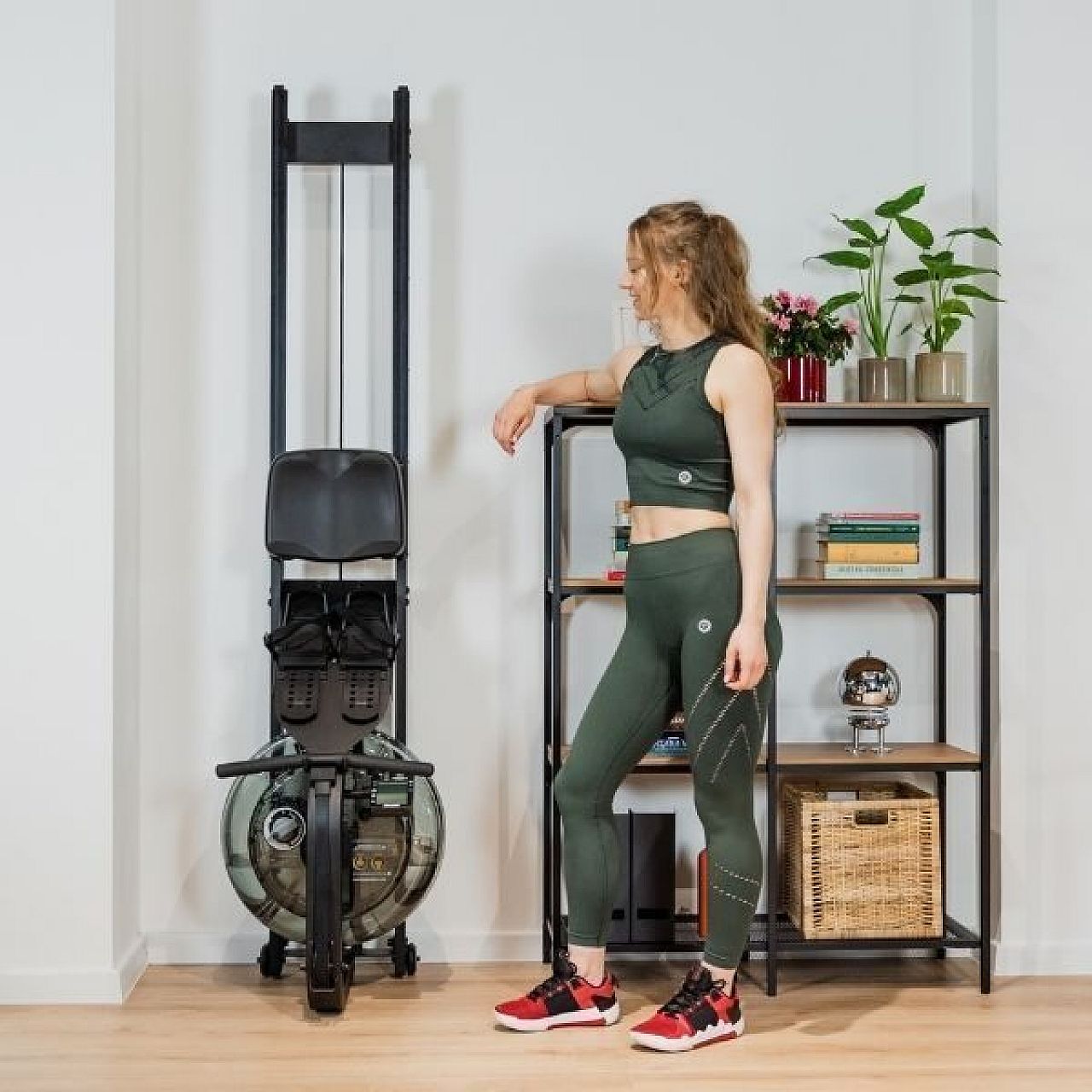 Правильно складений гребний тренажер щільний, незалежно від того, лежить він або стоїть вертикально. Після тренування не потрібно спорожняти резервуар для води.