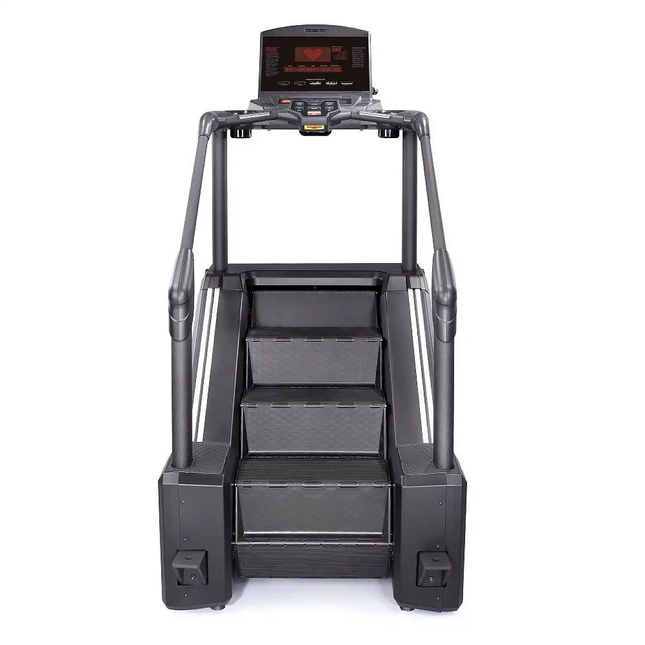 inSPORTline ProfiStair - тренировочная лестница для фитнеса, профессиональное кардио-оборудование, предназначенное для укрепления и моделирования бедер и ягодиц, а также для улучшения физического состояния. Этот альтернативный стационарный шаговый двигатель отличается высокой прочностью и долговечностью, особенно благодаря усиленной раме и массе – 231 кг. Надежный двигатель переменного тока гарантирует бесперебойную работу даже при постоянной нагрузке до 180 кг. Для безопасности тренировки есть боковые рейки по всей длине лестницы, аварийный тормоз и противоскользящее покрытие лестницы. Дополнительные преимущества оборудования включают систему стопорных винтов, компенсирующих неровные полы, две стойки для бутылок, четыре транспортных колеса, подставка для книги или планшета и вентилятор. Все параметры, включая скорость, управляются электронным способом. Скорость выполнения задается в шагах в минуту и составляет от 20 до 140 градусов/мин. Пользователь может выбирать из 20 уровней нагрузки. Высота одного шага – 19см, ширина 53см, глубина – 24,6см.