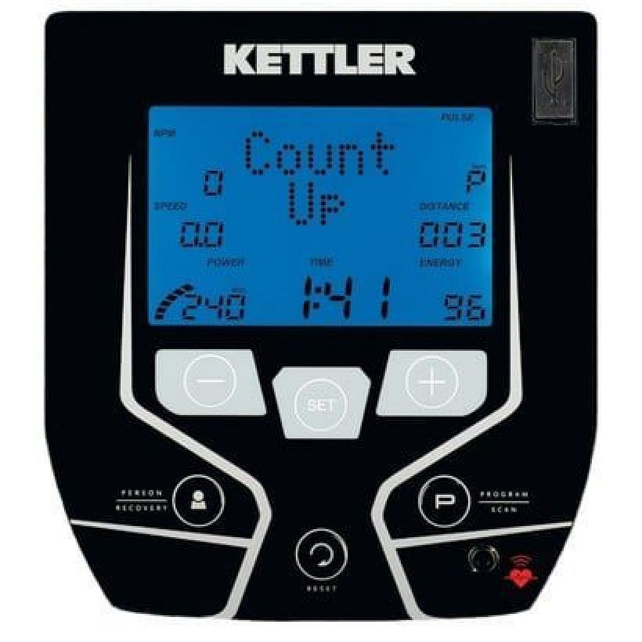 Велоэргометр с электромагнитной системой сопротивления и электронной регулировкой (самая совершенная на сегодняшний день система), что позволяет невероятно плавно регулировать уровень нагрузки с минимальными шагами. Дисплей с подсветкой типа „HeartRateLight” и графика профиля нагрузки указывает на оптимальную для Вас мощность тренировки. Велоэргометр Kettler Axiom разработанный для веса до 180 кг, четыре человека могут сохранить свои собственные настройки и анализировать их на компьютере через порт USB.