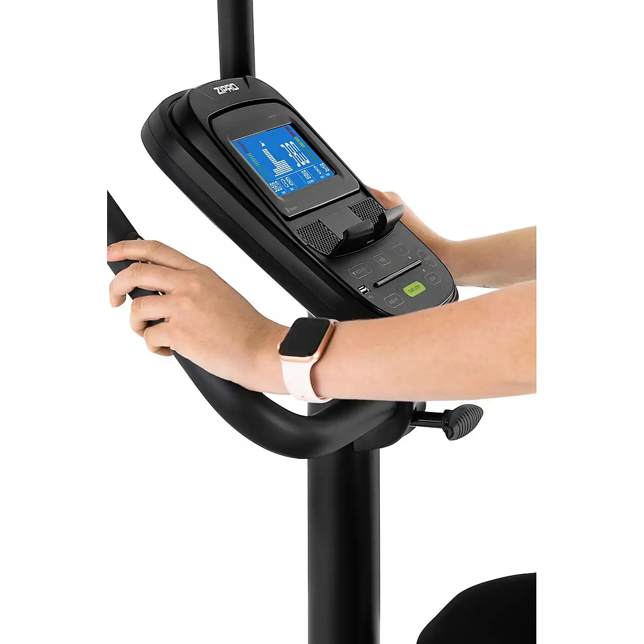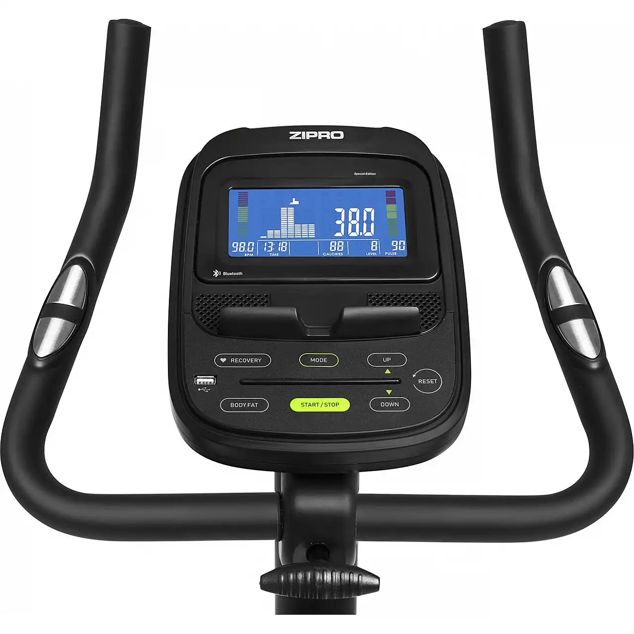 Тактильные датчики на рулевом колесе измеряют пульс и жировую изоляцию. Благодаря им проведем тренировку HRC, проверим уровень фитнес-ткани и фитнес-тесты.