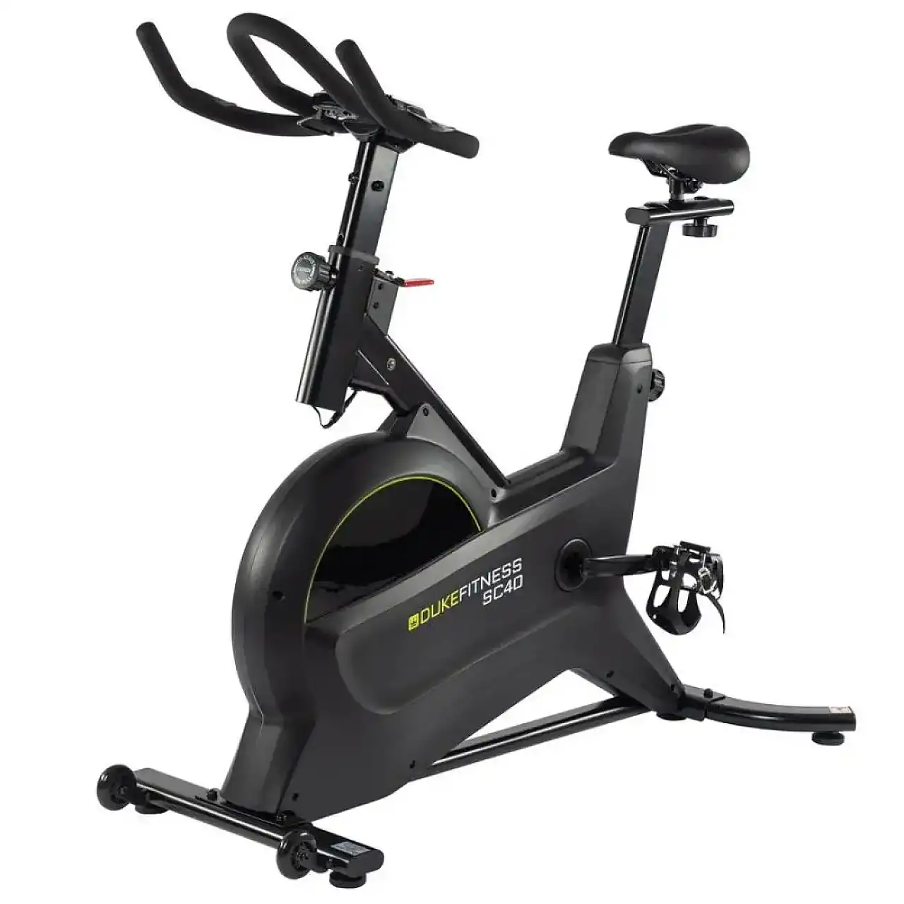 Велотренажер Duke Fitness SC40 – высококачественное оборудование. Ременная передача Poly-V не требует технического обслуживания и тише, чем цепная передача. Противоскользящая пенопластовая ручка: антискользящая ручка с высоким комфортом восхищения. Здесь используются педали-корзины: безопасны даже во время самых интенсивных занятий. Большая масса маховика вызывает большую инерцию, а следовательно, более естественное чувство от езды.