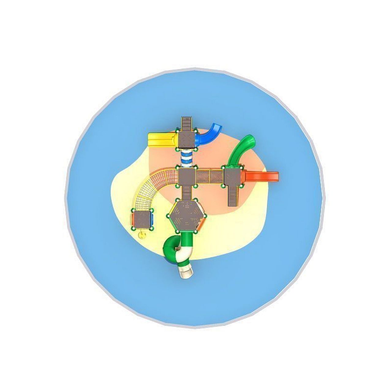 Мы рекомендуем обеспечить буферную зону шириной 1,5 м по всему периметру конструкции детской площадки для обеспечения максимального комфорта и безопасности детей, которые играют на такой площадке.