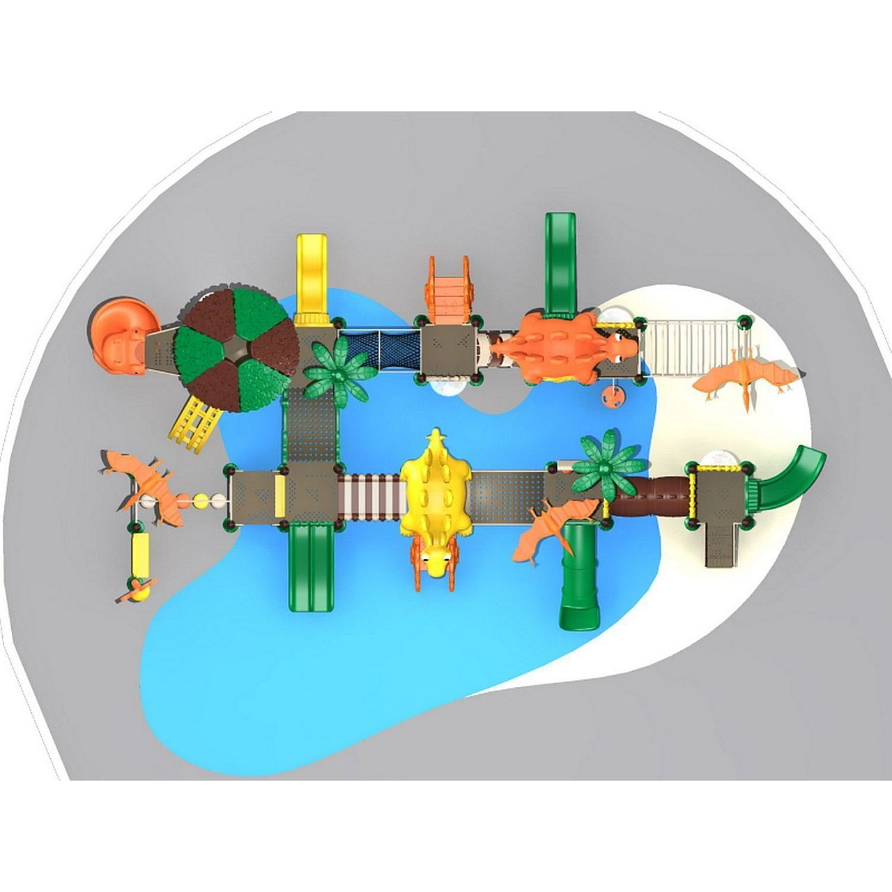 Комплекс детский игровой комплекс Dinosaur Series HDSZLJ140 вмещает все самое интересное и необходимое для детского активного отдыха и развлечений.