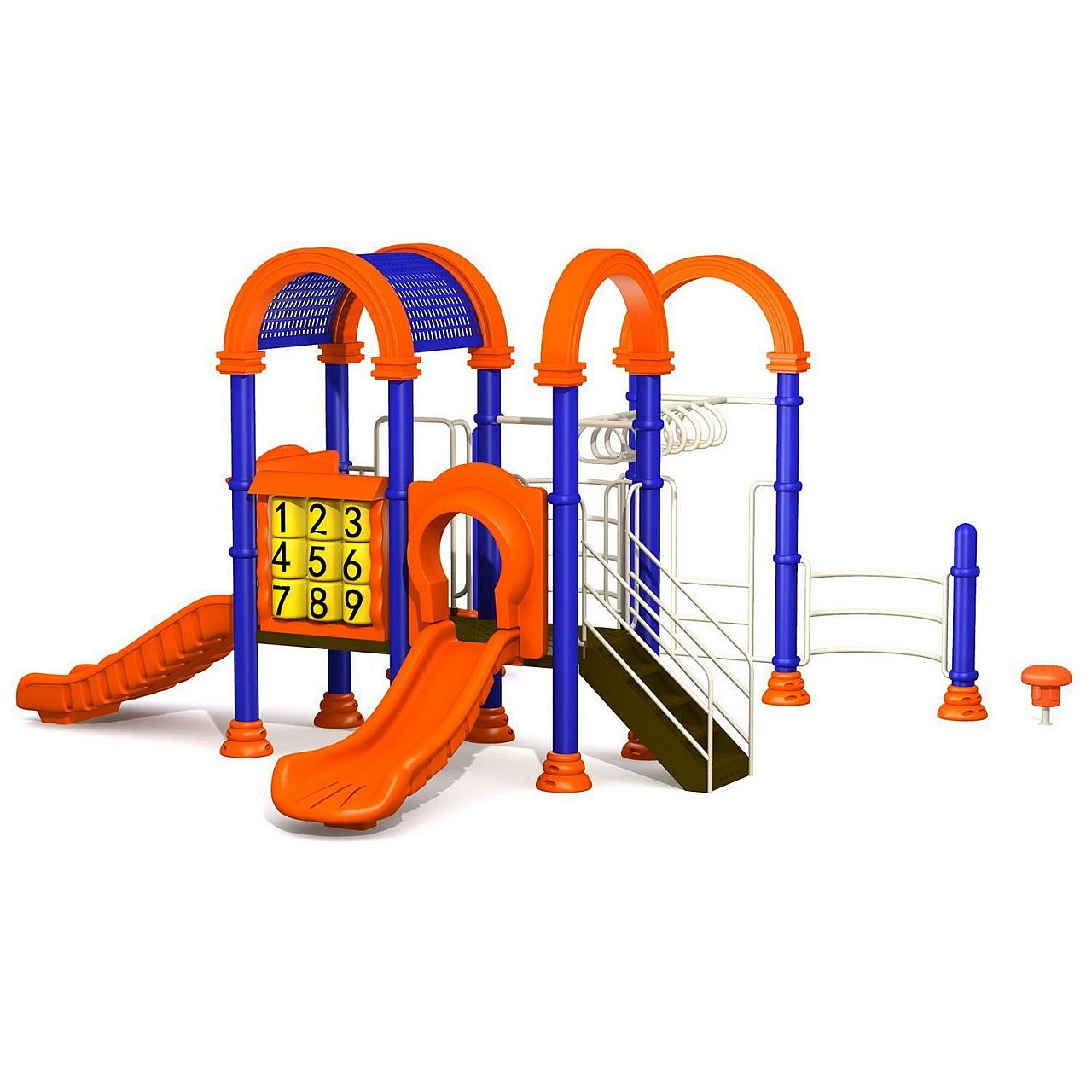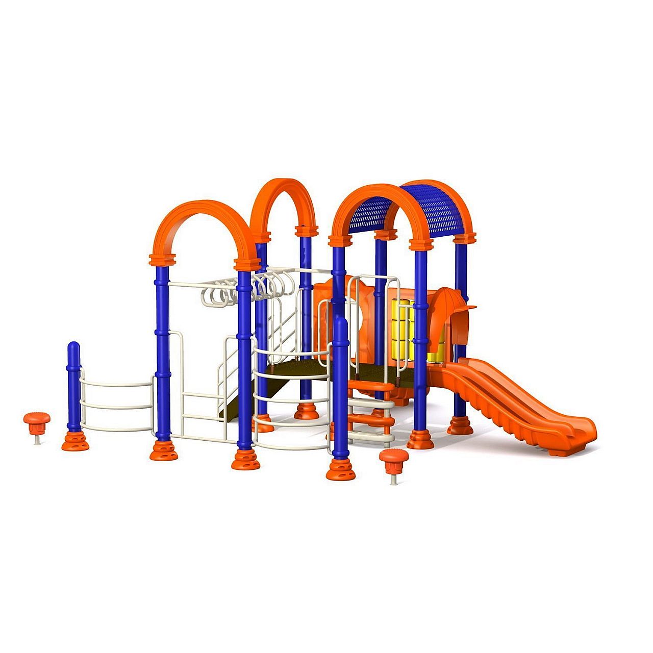 Детали конструкции не содержат острых углов, что существенно уменьшает возможность получения различных трав Вашими детьми во время развлечений. Кроме этого все элементы покрыты специальной безопасной порошковой краской, которая не только защищает комплекс от коррозии и выгоранию на солнце, но привлекает внимание детишек своими разнообразными насыщенными цветами.