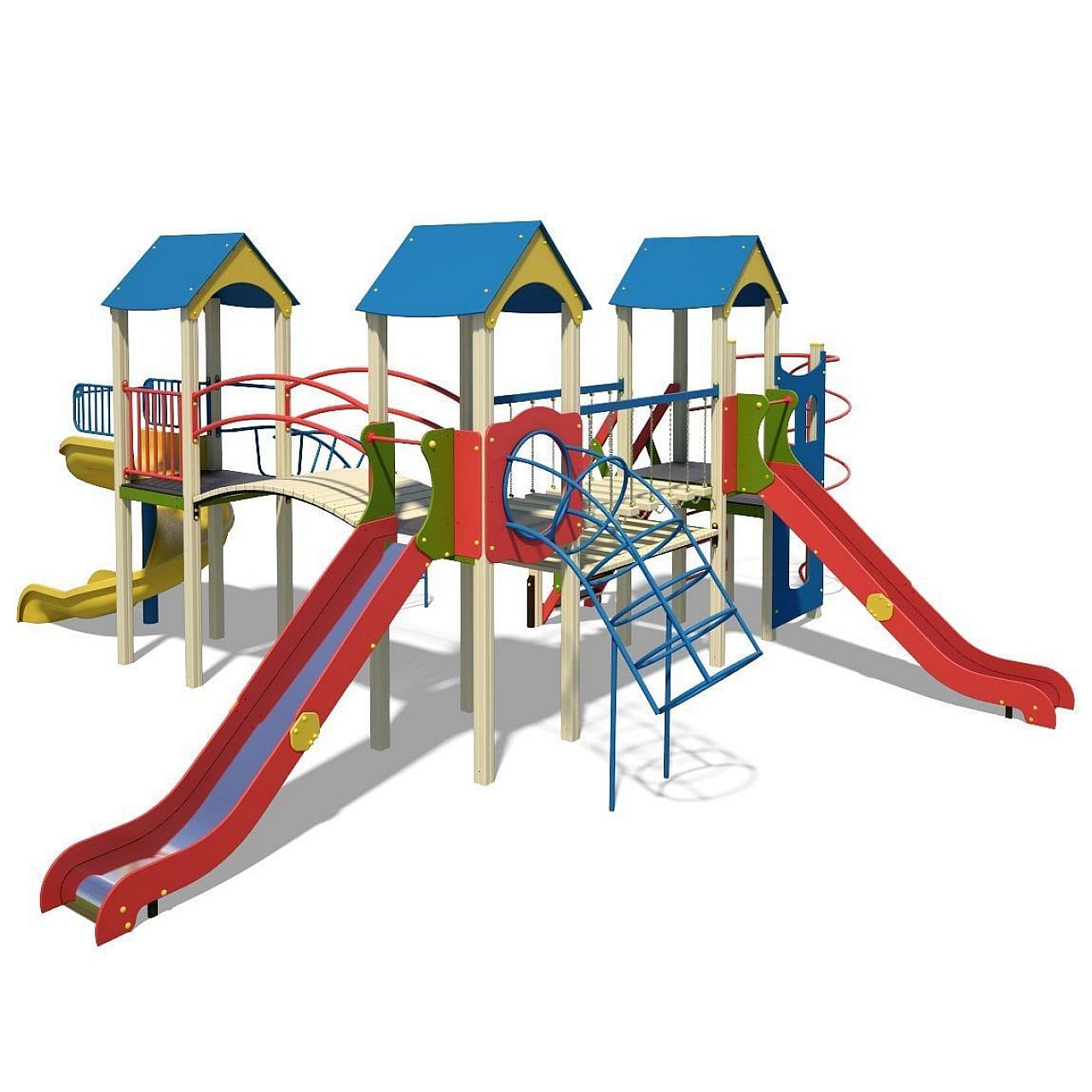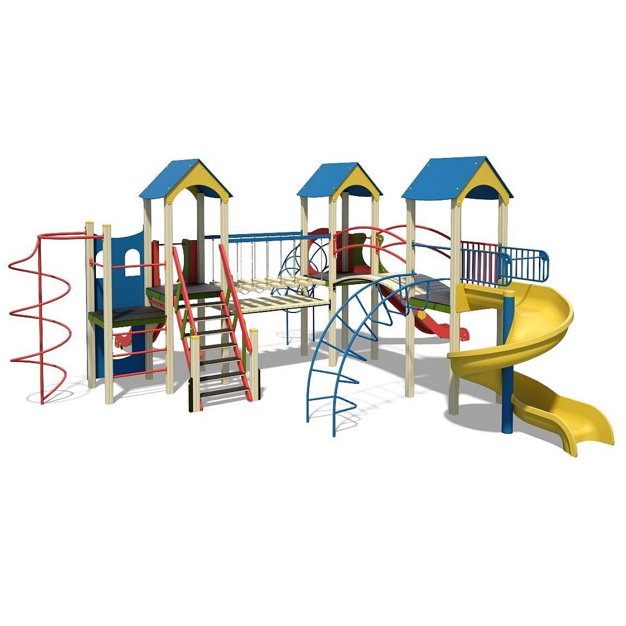 Игровой комплекс «Панда» предназначен для игровых физических упражнений на открытом воздухе. Комплекс состоит из четырех платформ, установленых на стойках на высоте 1,5 метра соединенных между собой переходами различной конфигурации. Кроме перехов к платформам присоединятся различные подъемы и спуски.