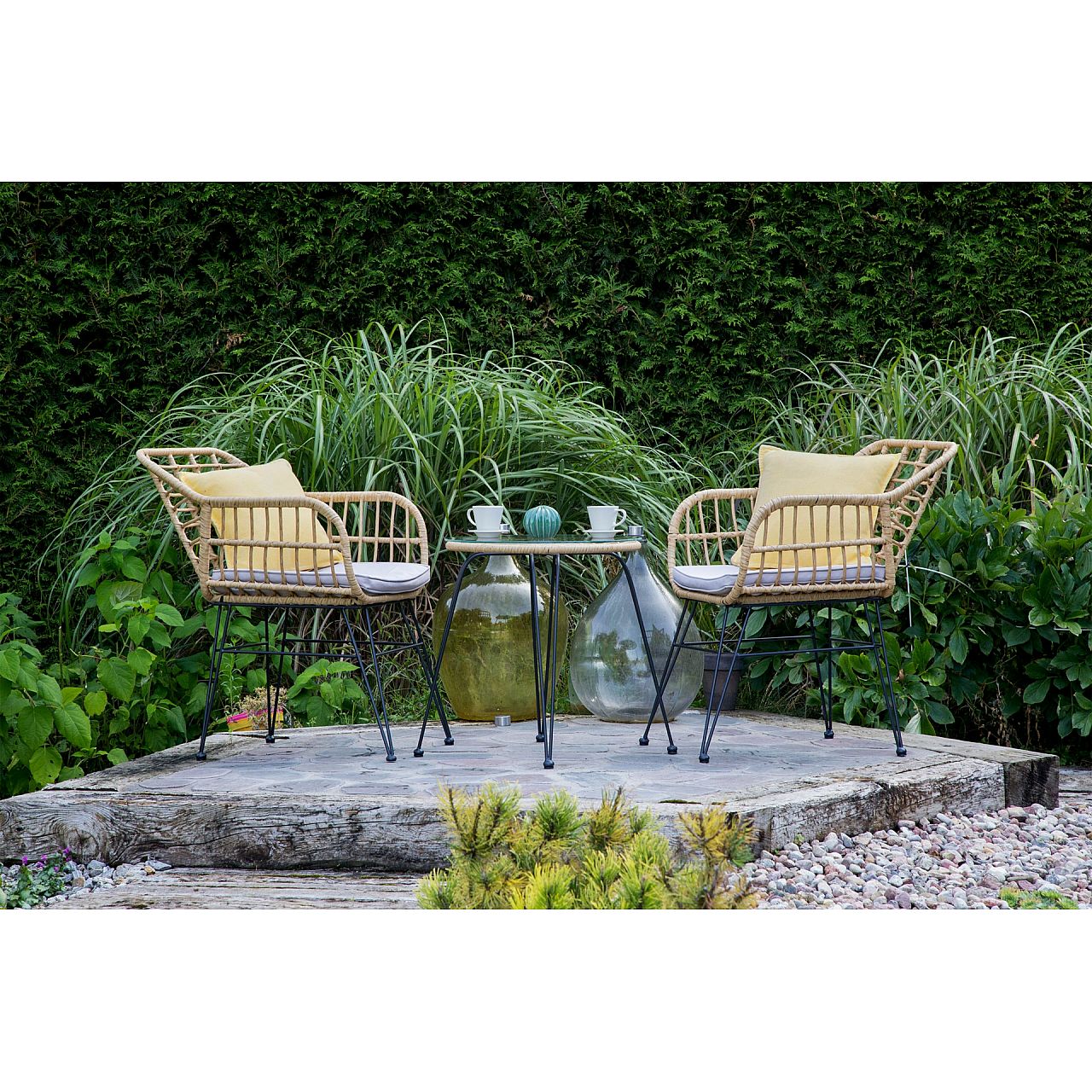 В комплект входят кресла, подушки, стол, набор для сборки и стеклянная столешница. В нашем предложении также есть другие комплекты садовой мебели, идеально подходящие для двух человек.