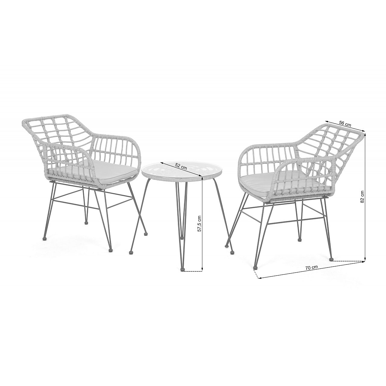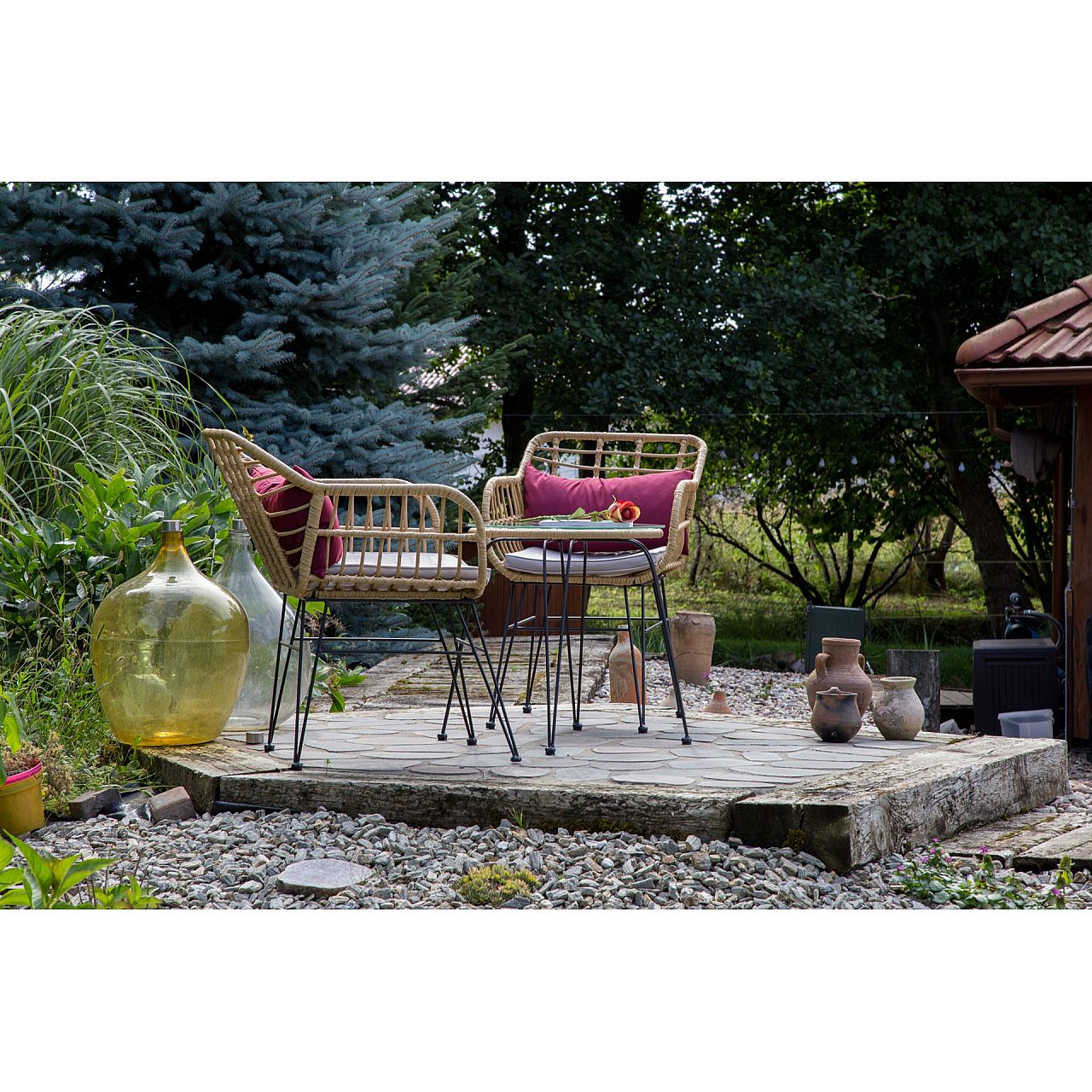 Набор Bono — отличный выбор для сада и террасы, но он также отлично будет смотреться на балконе или в небольшом патио. В комплект входят два удобных кресла и небольшой журнальный столик, напоминающий классическую мебель для кафе. Кресла и стол изготовлены из комбинации техноротанга и алюминиевых профилей с порошковым покрытием. Дополнительно на сиденья можно положить мягкие подушки для большего комфорта. Конструкция очень легкая, а сам набор исключительно очарователен.