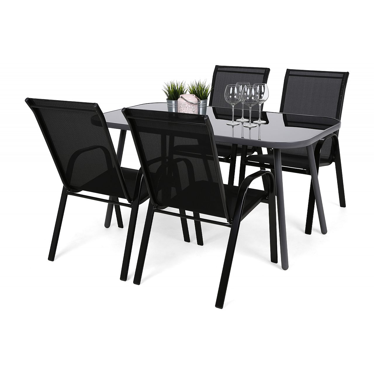 Садовая мебель Casablanca из черного металла — идеальный выбор для людей, которые ищут сочетание современного дизайна с практичными функциями. Комплект состоит из стола длиной 145 см и четырех стульев. Черная металлическая садовая мебель Casablanca, вдохновленная классической элегантностью и рассчитанная на длительное использование, станет центром вашего сада, террасы или балкона.