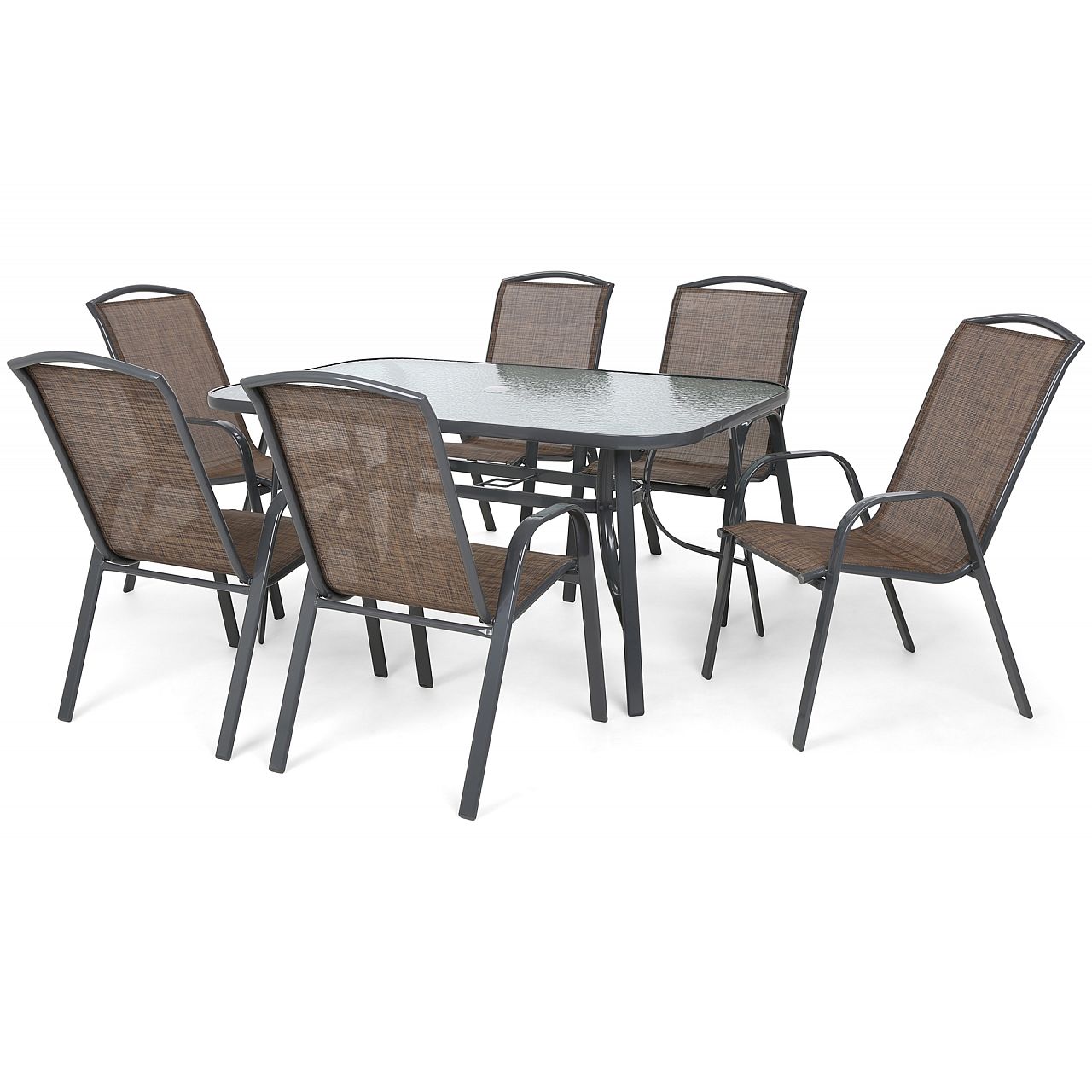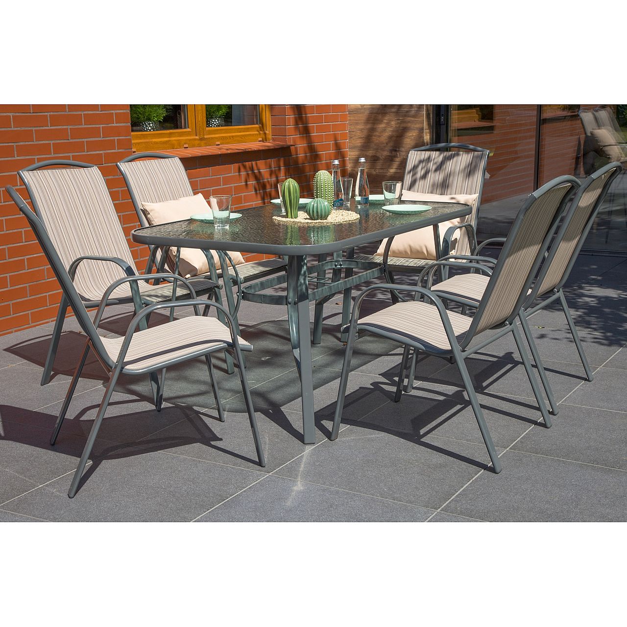 Предлагаемая нами мебель изготовлена из стали и ткани Texteline. Это делает их прочными и прочными, и в то же время очень легкими и удобными. Стальные профили окрашены порошковой краской, устойчивой к истиранию и повреждениям, поэтому комплект надолго сохранит привлекательный внешний вид. В комплект входит стол со столешницей из закаленного стекла и шесть стульев со спинками. Помимо комплектов металлической мебели в нашем предложении также есть удобные садовые кресла.