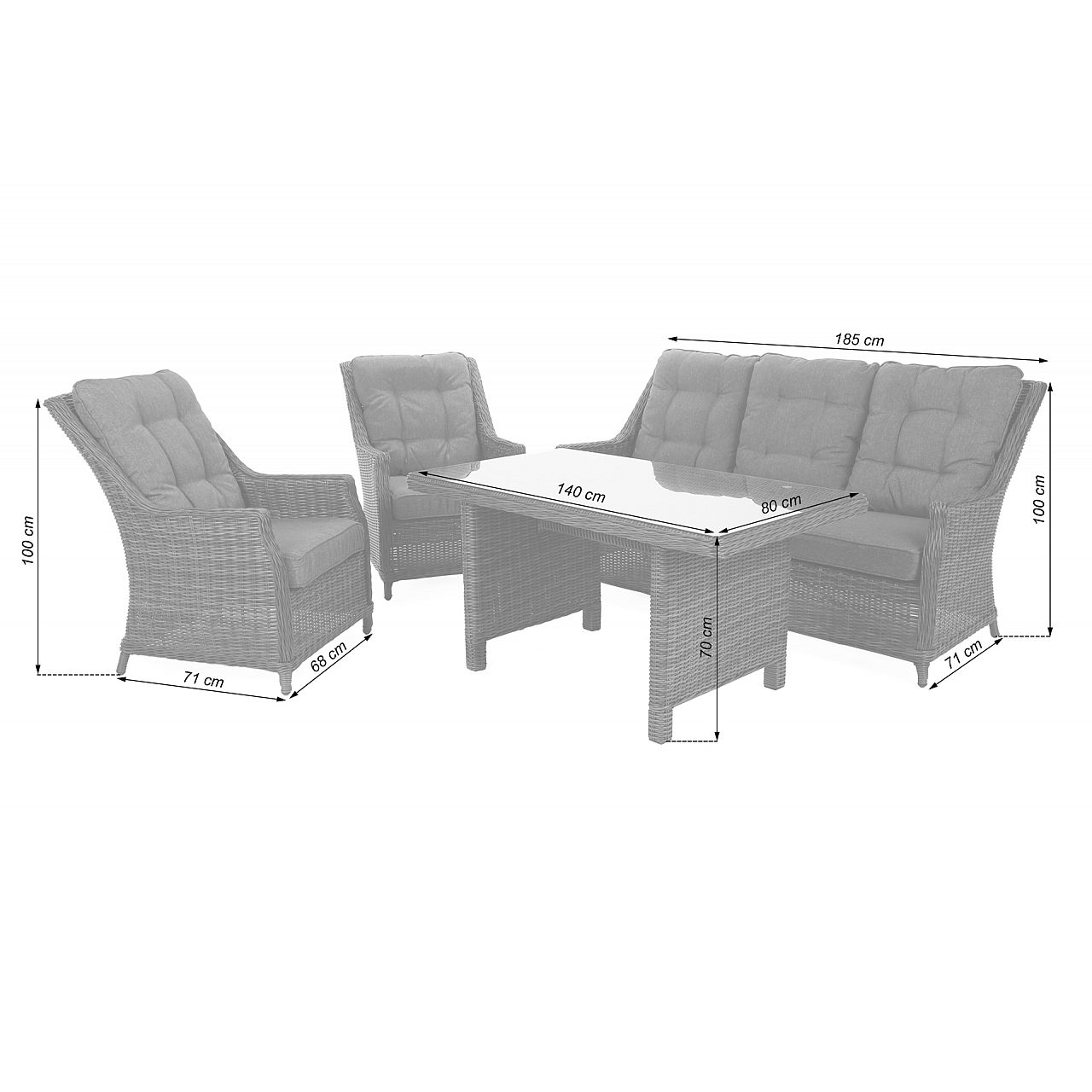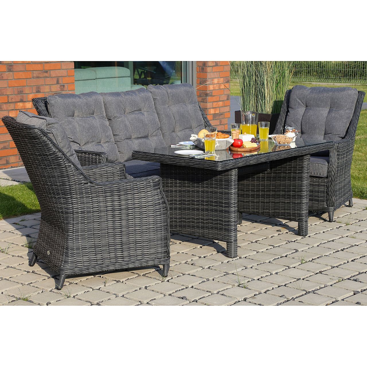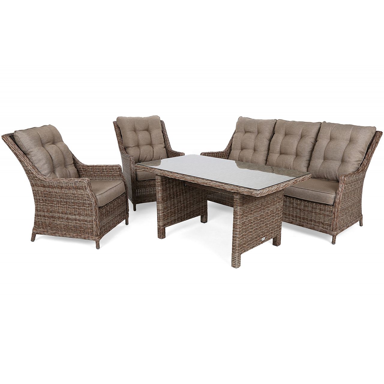 В комплект входит трехместный диван, два кресла и стол. Комплект обеспечит комфортное пространство для отдыха всей семьи. Вы можете разложить его на террасе или разместить в беседке. Сиденья наполнены мягкими подушками, гарантирующими комфорт. Мебель отличается вневременным дизайном.