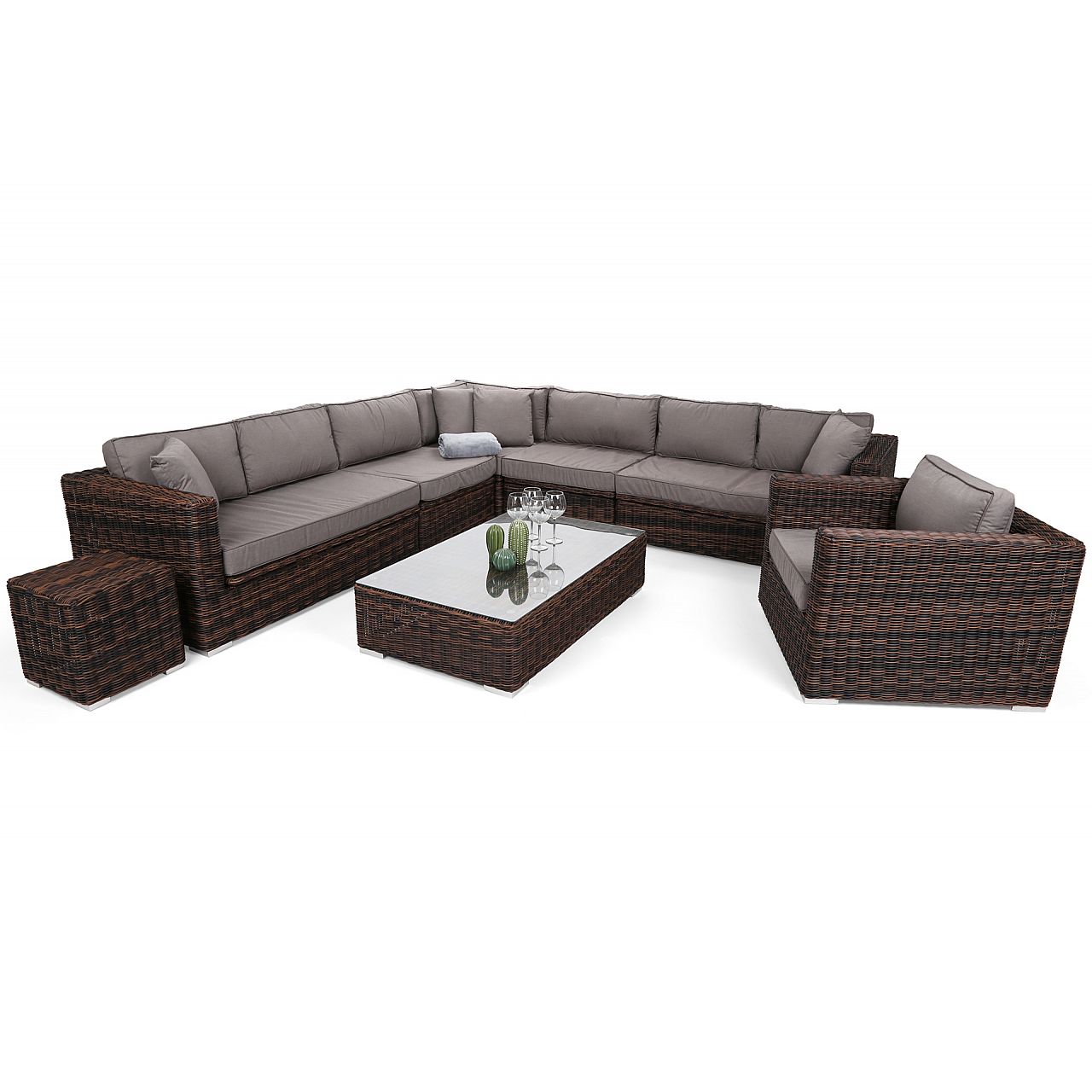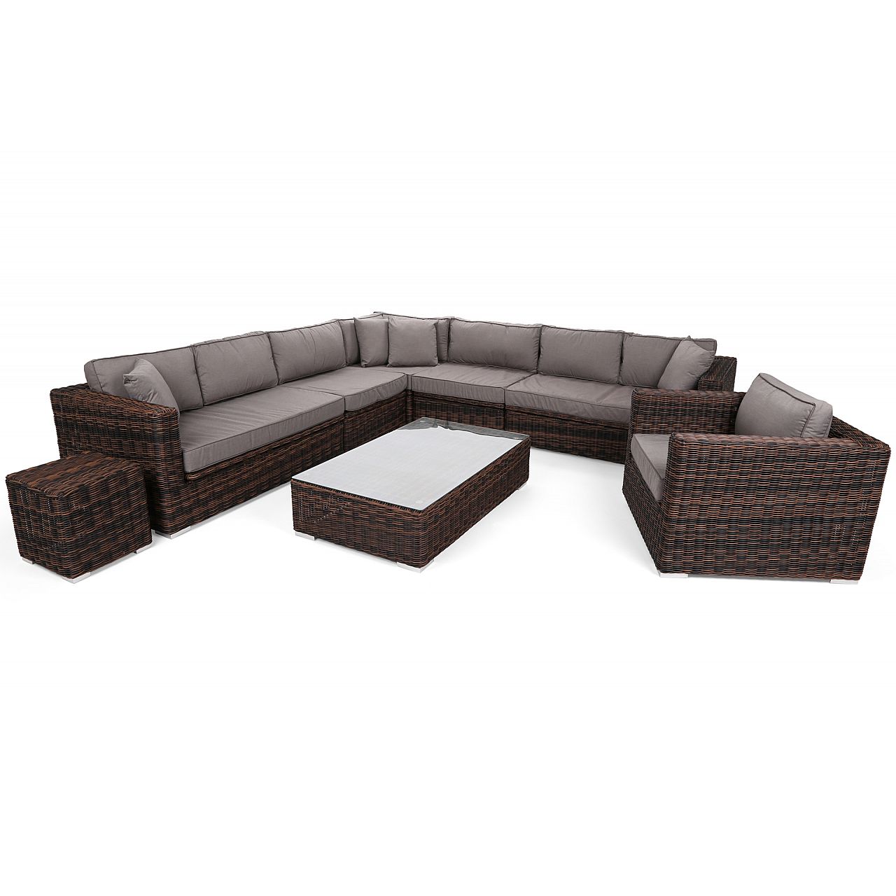 Погрузитесь в роскошь и комфорт с нашим комплектом угловой садовой мебели из техноротанга Livorno Rust Brown / Brown Melange. Этот эксклюзивный комплект, состоящий из углового дивана, разделенного на сегменты, кресла, пуфа и стильного столика, представляет собой идеальное сочетание функциональности и эстетики для вашего сада.