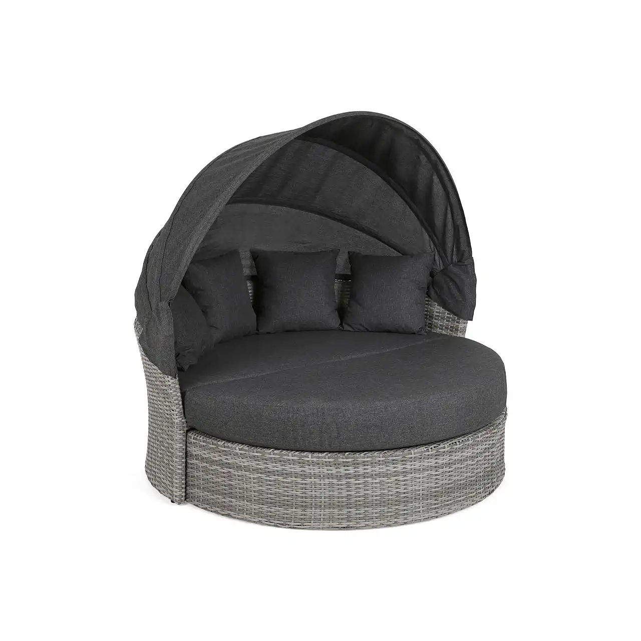 Диван из коллекции Sydney прекрасно впишется в современную террасу. Самыми привлекательными элементами дивана, безусловно, являются складной балдахин и круглая форма. Также следует отметить место для хранения вещей под сиденьем, благодаря которому мебель легко трансформируется в удобный двухместный шезлонг, шезлонг с навесом, а также садовую скамейку или пляжную корзину.