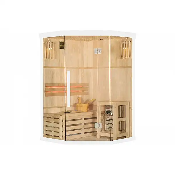 | Обладнання | • внутрішнє освітлення з окремою вилкою • плита і каміння • відро з черпаком для води для посипання каміння • гігрометр (вимірювання вологості) • пісочний годинник (для вимірювання часу відвідування сауни) • додаткове RGB LED освітлення |