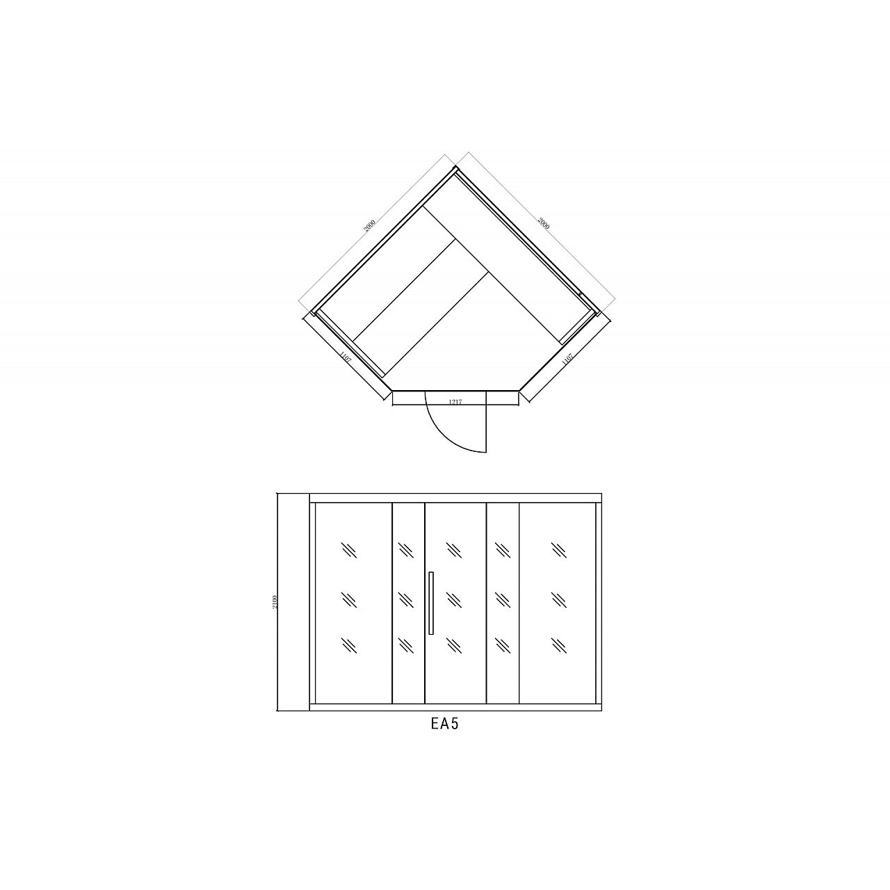 Обладнання | внутрішнє освітлення з окремою вилкою; піч і каміння; відро з черпаком води для розбризкування каменів; гігрометр (вимірювання вологості); пісочний годинник (для вимірювання часу відвідування сауни); додаткове RGB LED підсвічування |