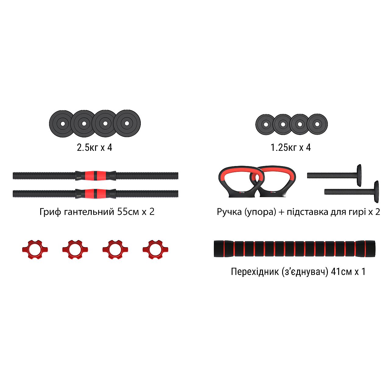 Гантели с функцией штанги 6в1 от Fit-On – это многофункциональный комплект, объединяющий в себе гантели, штангу, гири и ручки для функционального тренинга. Благодаря новому модульному решению набор позволяет собрать сразу несколько видов спортивного инвентаря без потребности в отдельных снарядах.