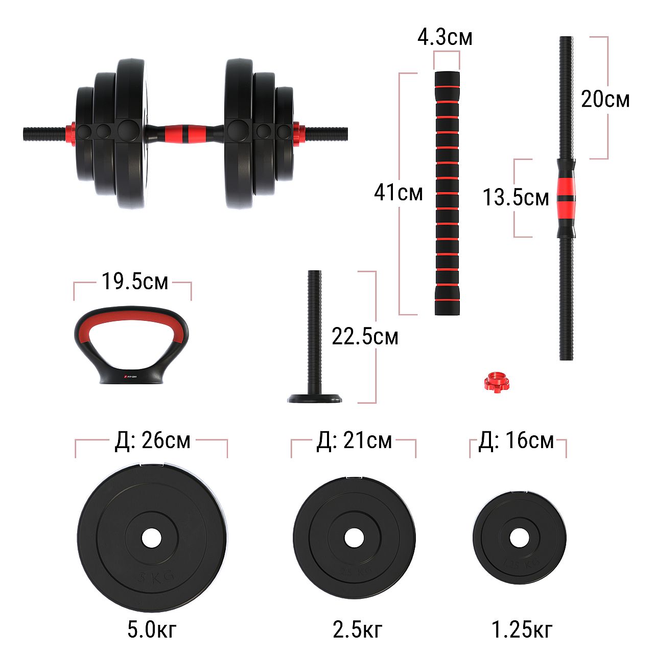 Если вы ищете компактное, удобное и многофункциональное решение для силовых тренировок дома – набор гантелей с функцией штанги 6в1 Fit-On станет идеальным выбором. Все, что нужно – уже в одном комплекте.